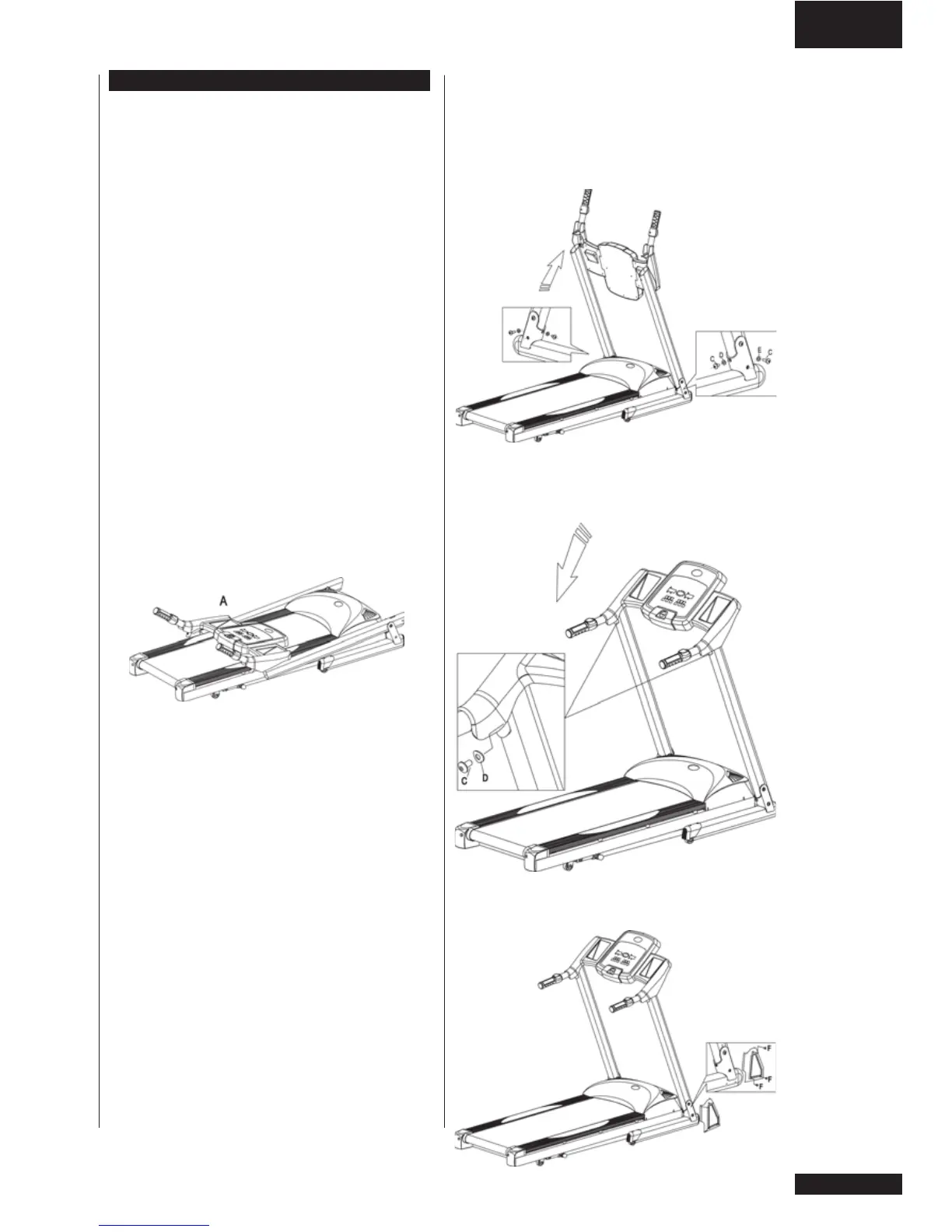 Coloque los tapas (B) con los tornillos (F) en la parte