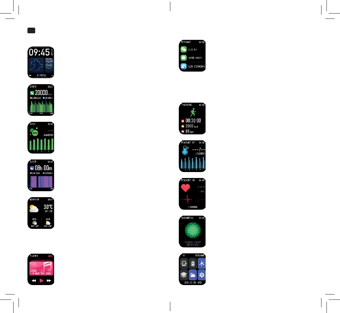 Zeigen Sie Uhrzeit, Wochentag, Schritte und andere