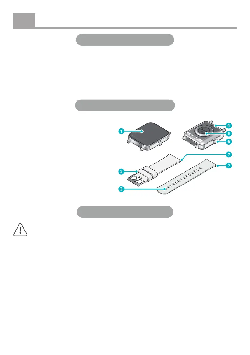 • Förvara smartklockan och tillbehör utom räckhåll för barn, särskilt små delar som kan