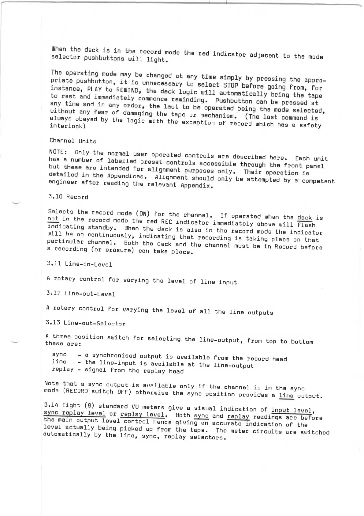 Brenell MINI 8 - Record Function; Line-in Level Control; Line-out Level Control; Line-out Selector Switch
