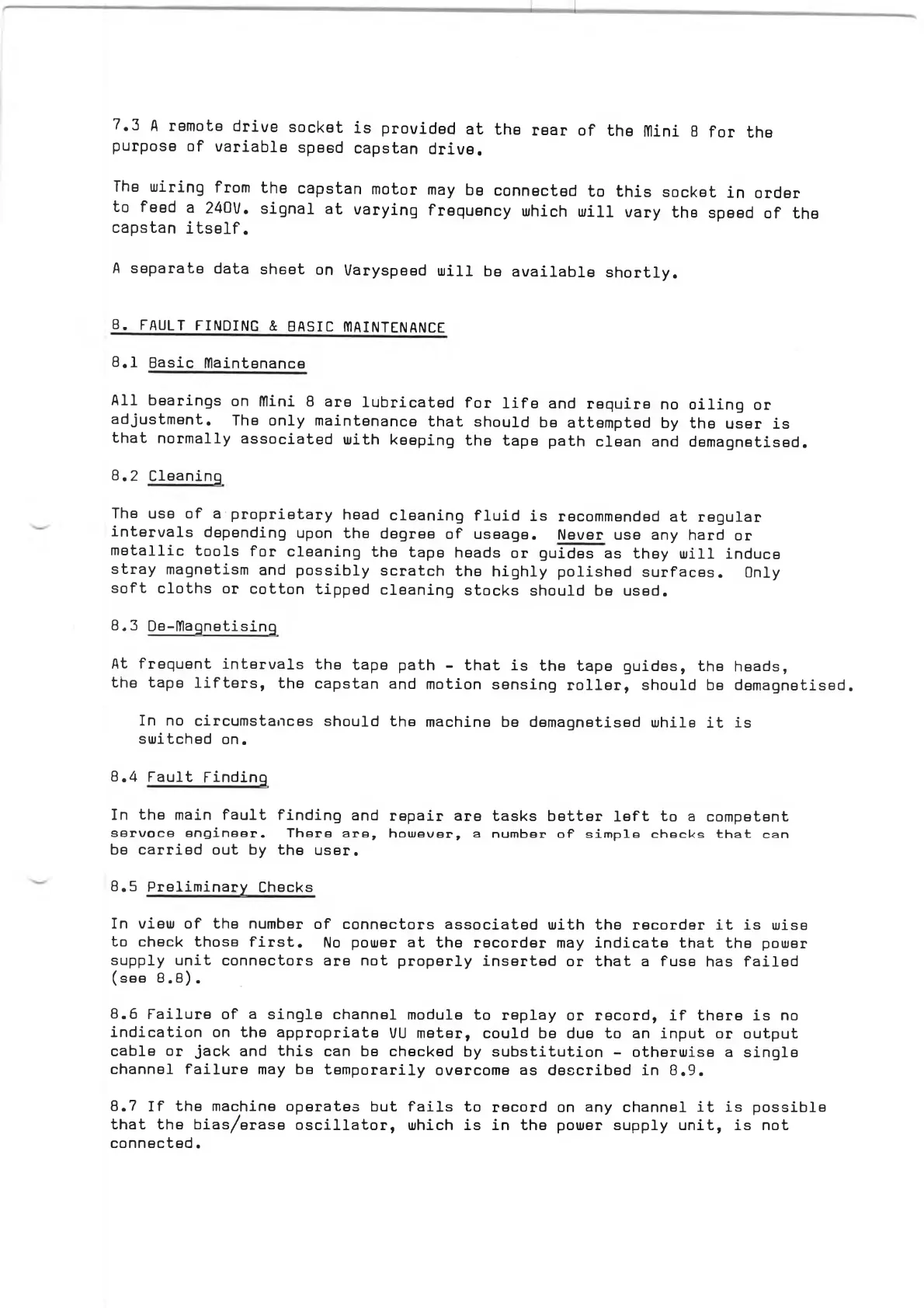 Brenell MINI 8 - Remote Drive Socket; Fault Finding & Basic Maintenance; Basic Maintenance Overview; Cleaning Guidelines
