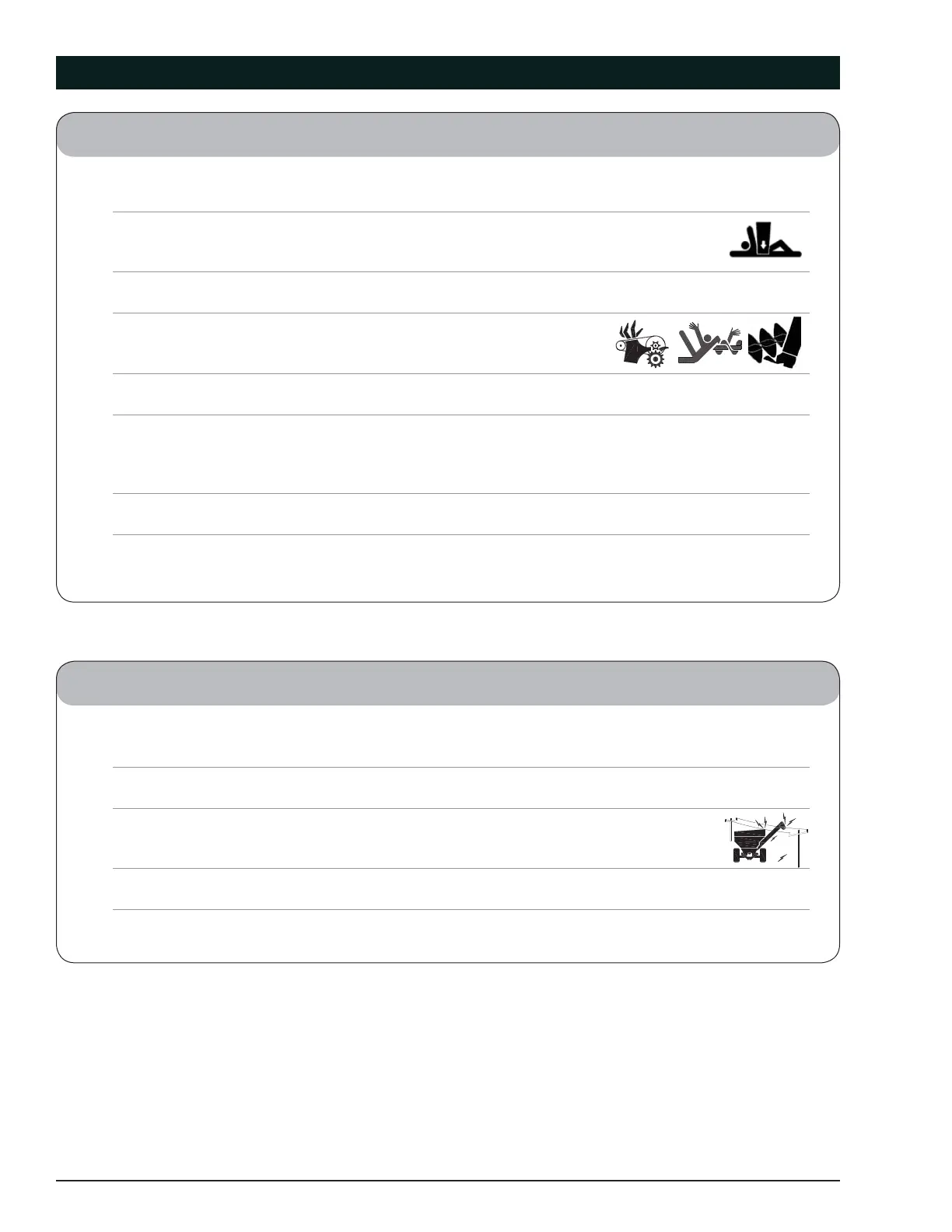 • Avoid working under an implement; however, if it becomes absolutely unavoidable,