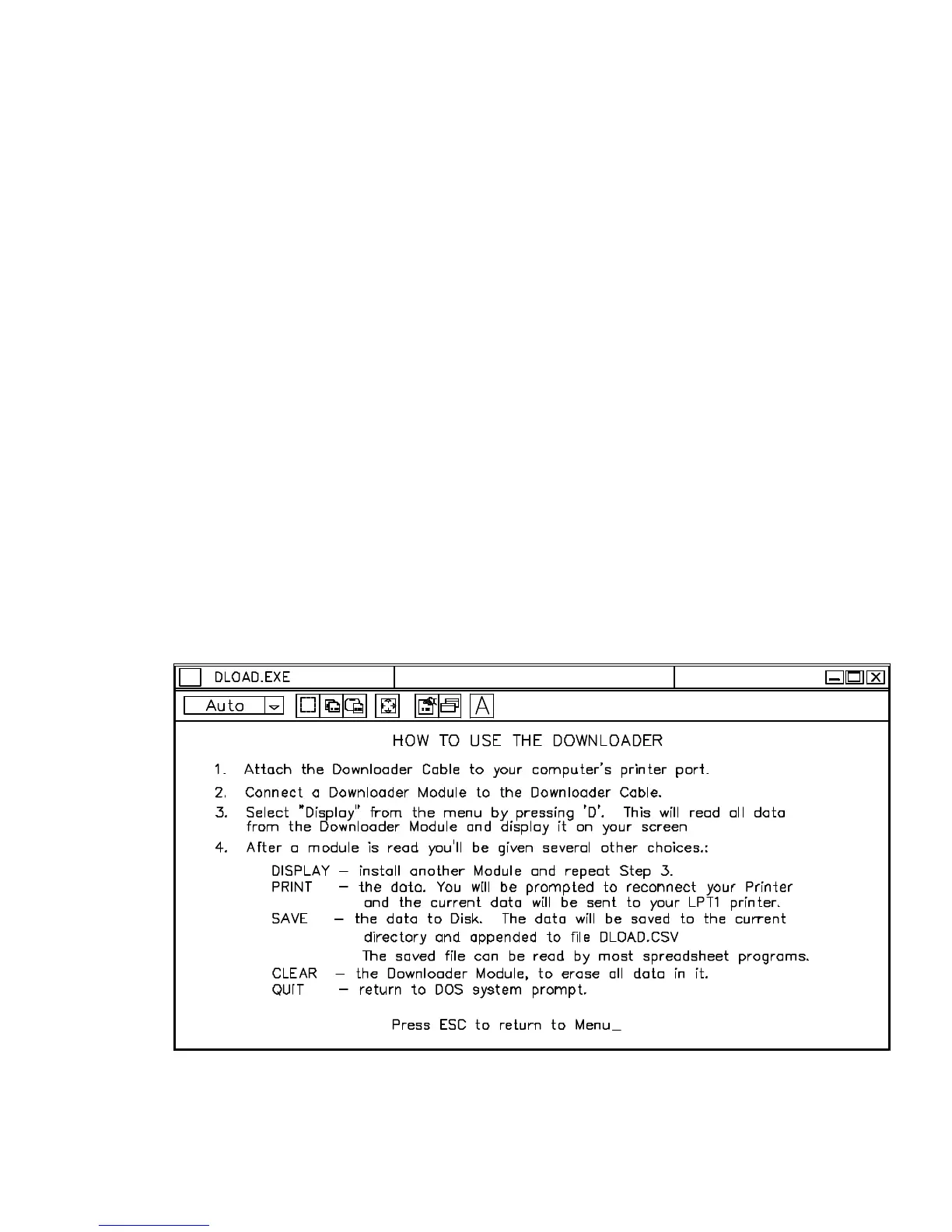 5. Start the Downloader program by typing DLOAD. (Use DLOADER if you want to