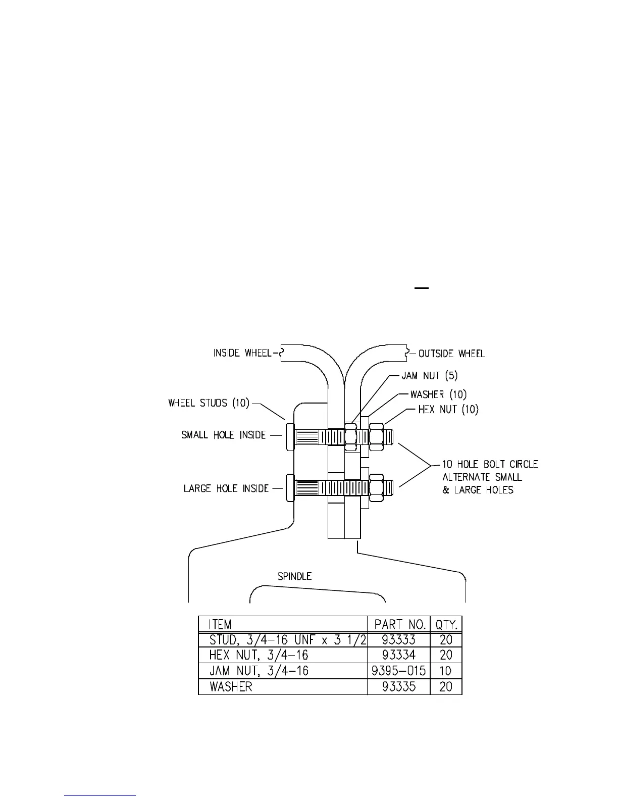 1. If necessary, replace existing wheel studs with longer 3/4-16 UNF x 3 1/2" studs.