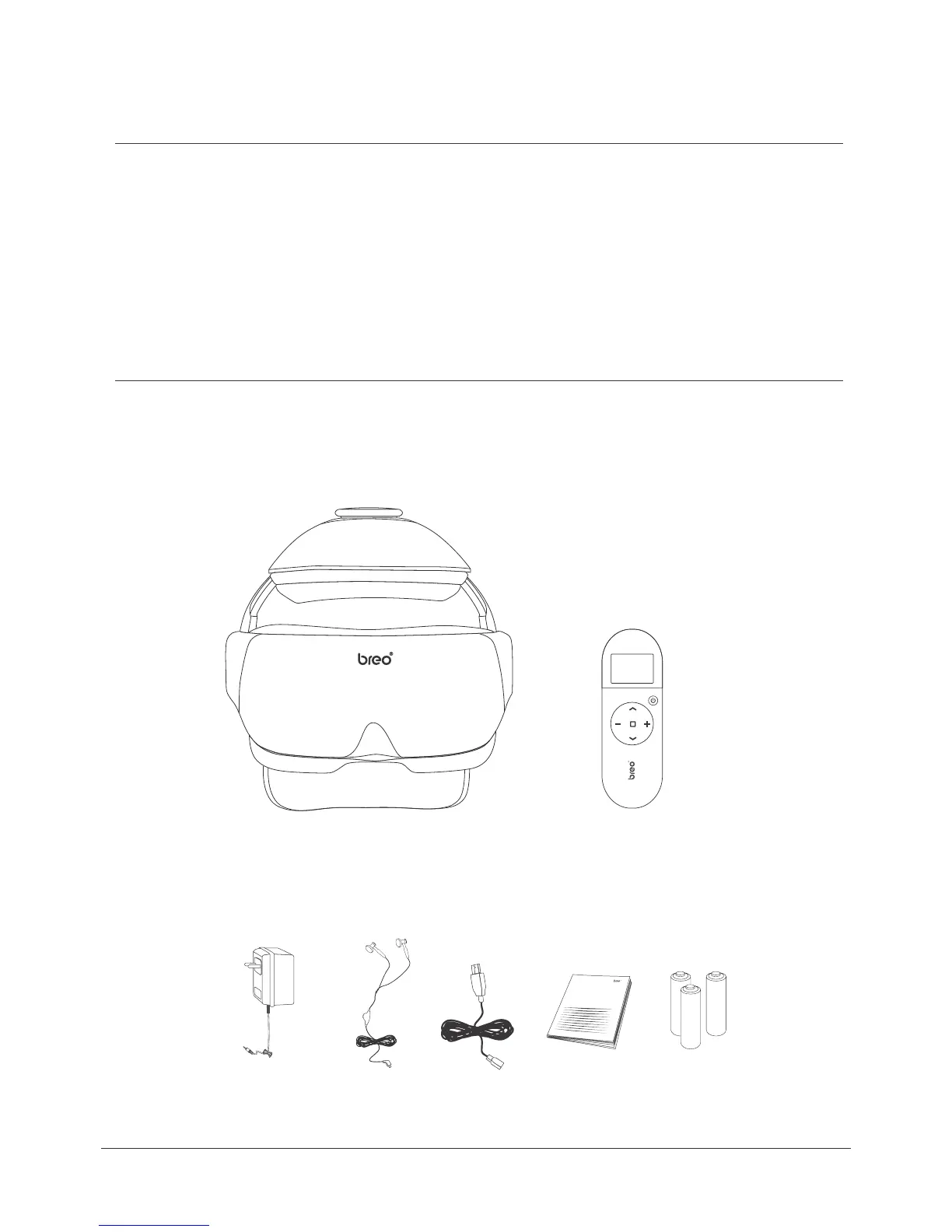 The package includes: Main Unit, Controller, Power Charger, Batteries, User