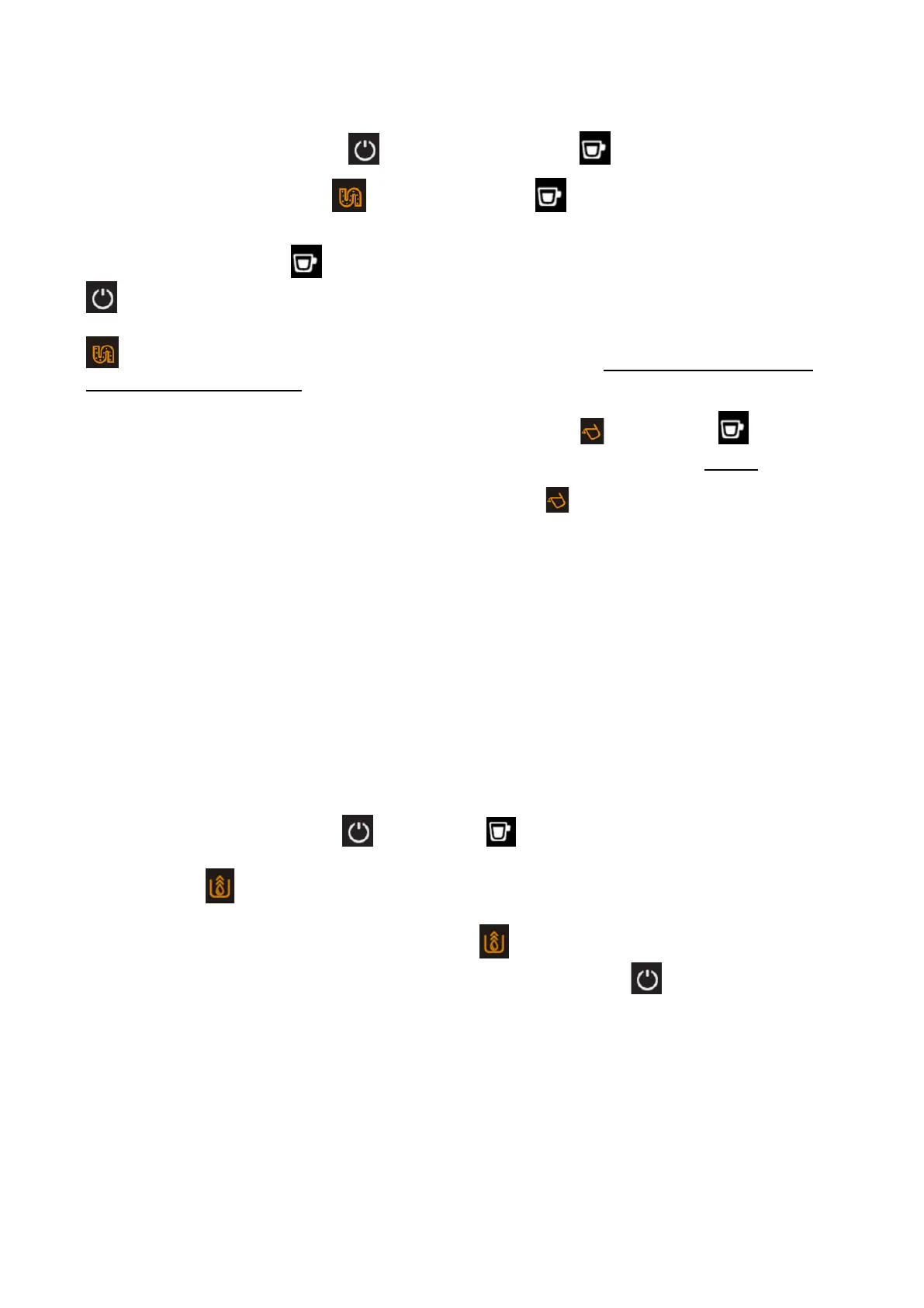 1. In standby mode, press and hold and espresso buttons for 5 seconds.