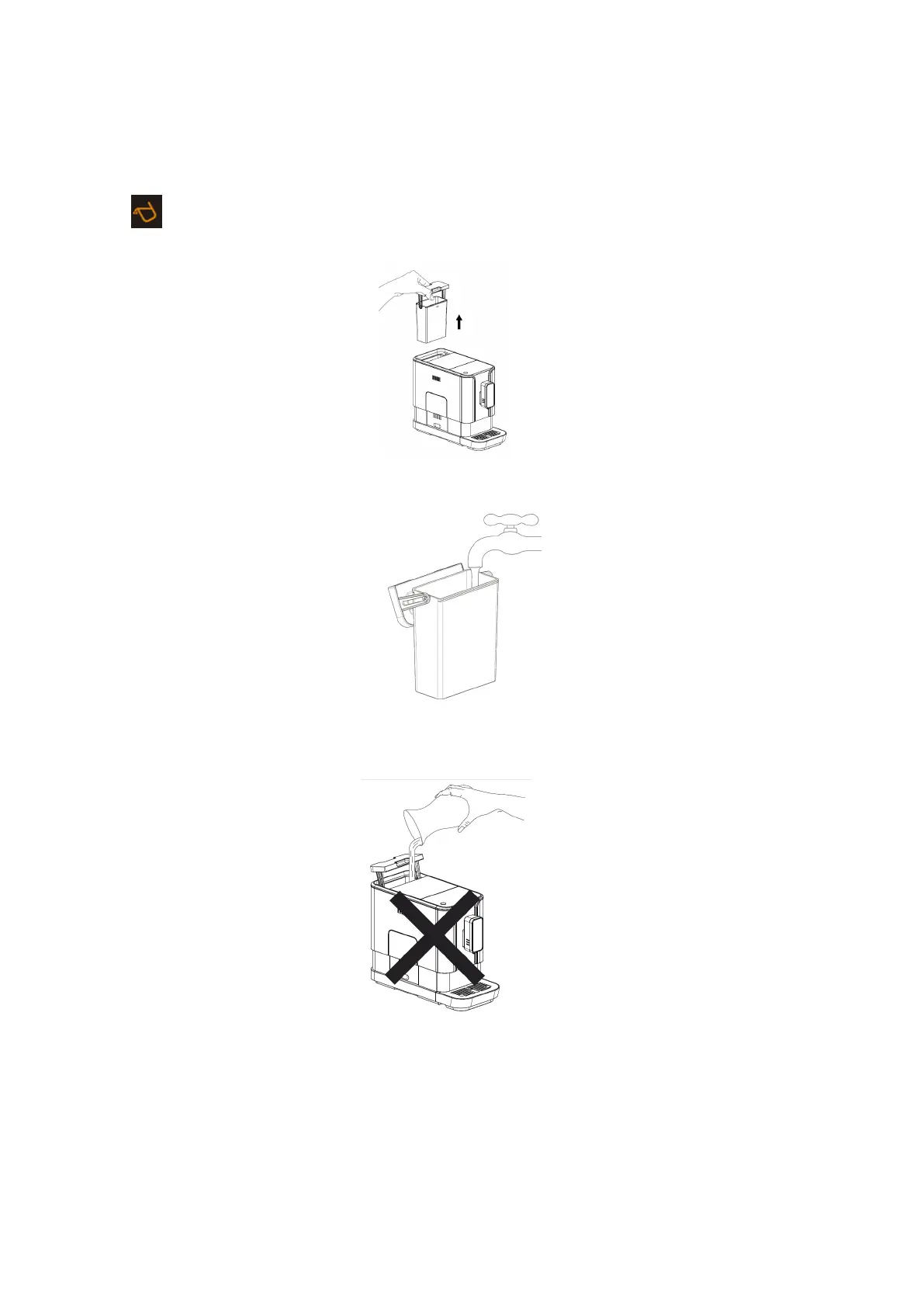IMPORTANTE: Non riempire mai il serbatoio dell'acqua con acqua calda, frizzante o qualsiasi