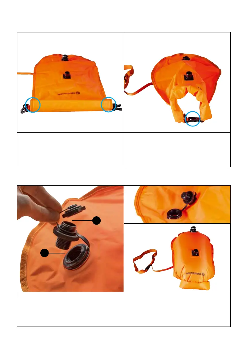 Aufblasventil zu sobald der Beutel vollständig aufgeblasen wurde. Prüfen Sie, dass