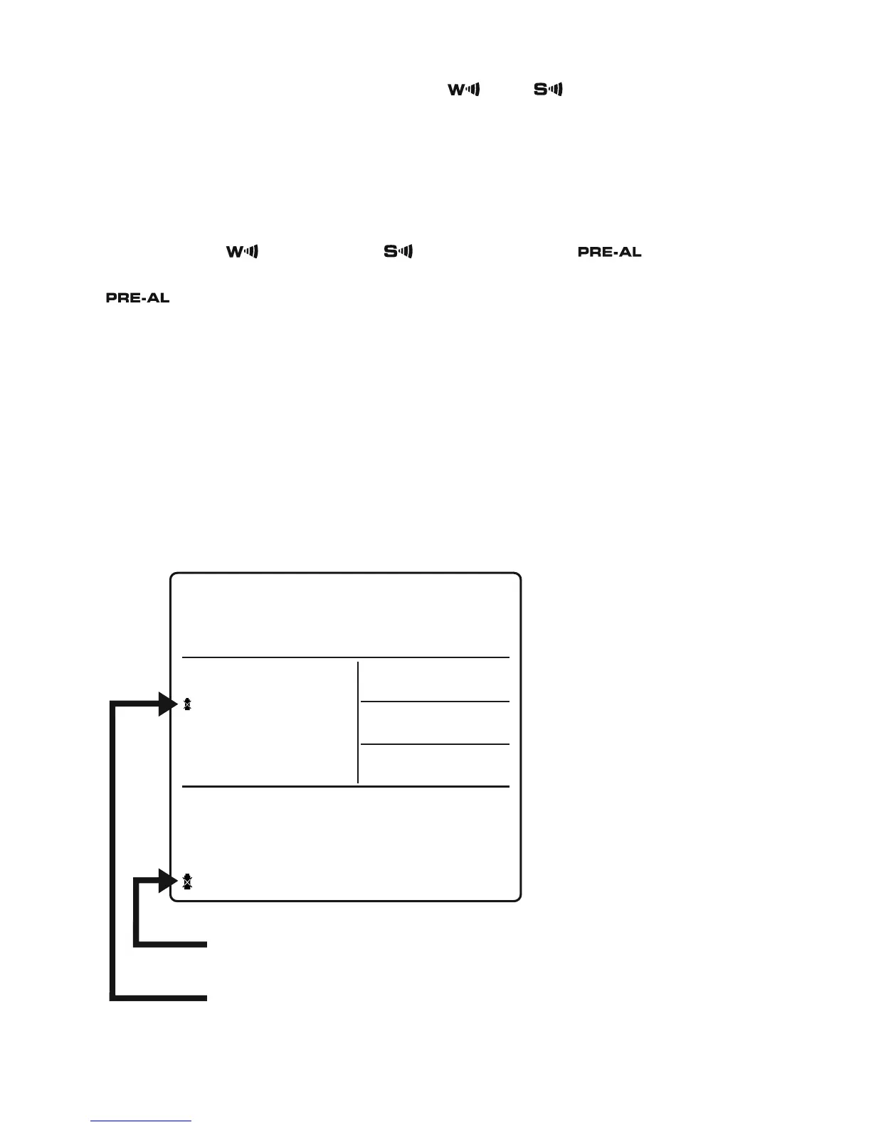 • If weekday alarm [ ] or single alarm [ ] is set, the Pre-Alarm [ ] can be programmed.