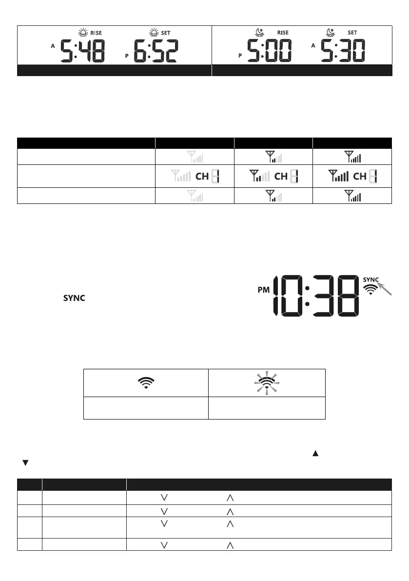 1. The console display signal strength for the wireless sensor(s), as per table below: