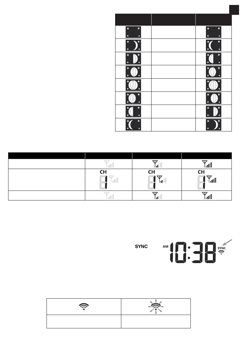 1. The console display signal strength for the wireless sensor(s), as per table below: