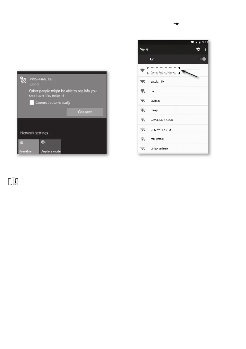 console’s PWS WI-FI network as shown in gures below (console WI-FI network name will always