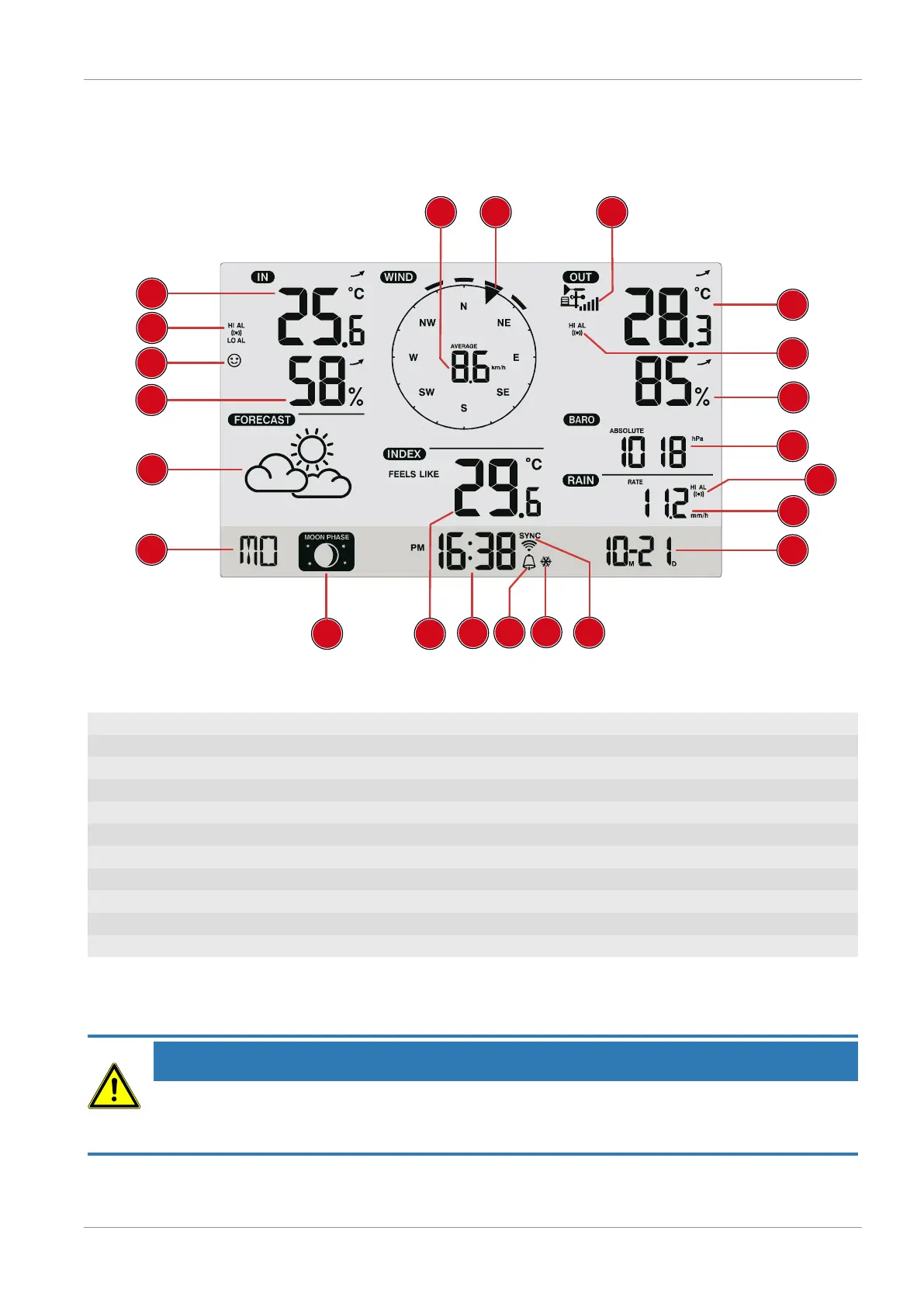 21 Temperature alarm indoors enabled 22 Indoor temperature