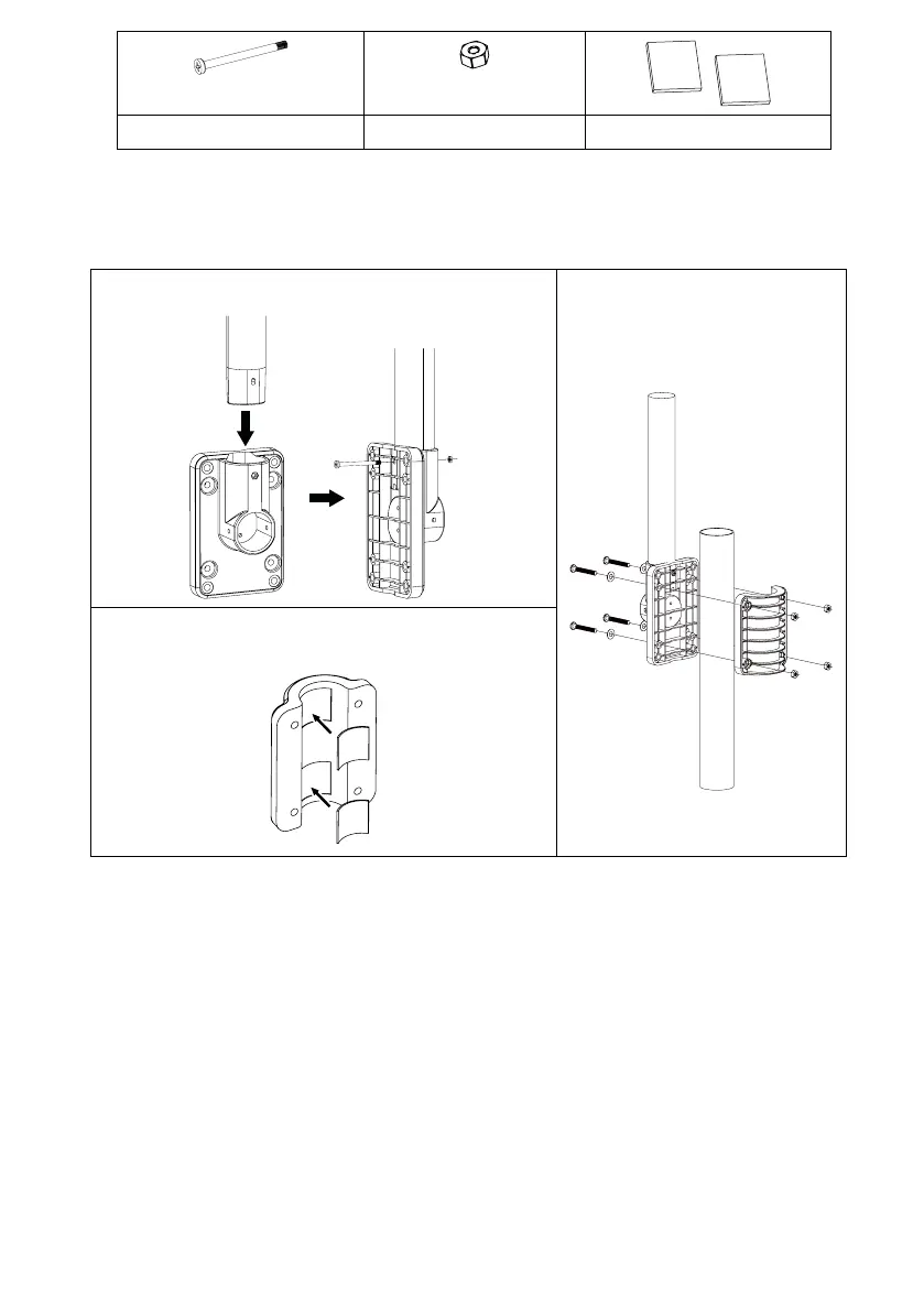 1. Befestigen Sie die Kunststostange mit dem Montagesockel, der Montageklemme, den
