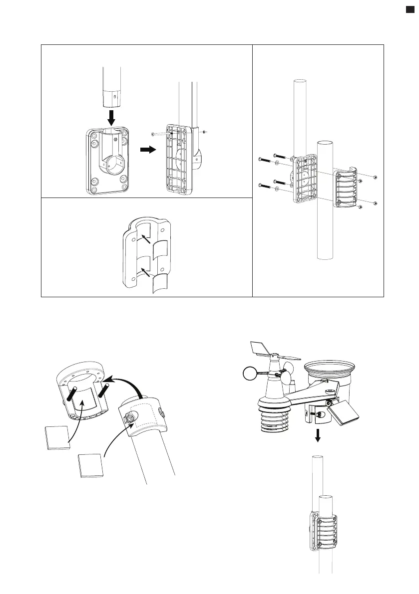 1. Fasten the plastic pole onto your x pole with mounting base, clamp, washers, screws and