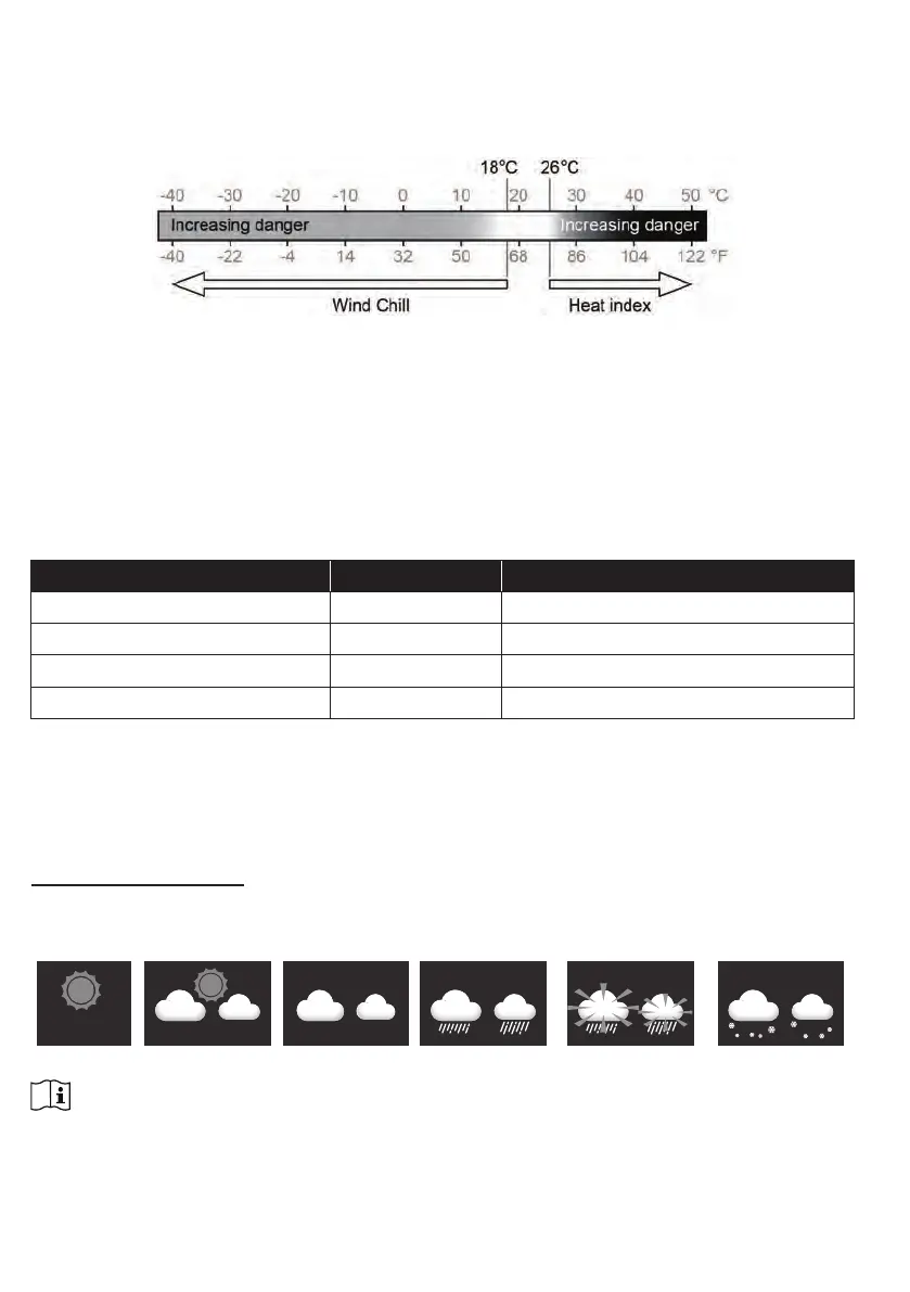 higher than 10°C with wind speed below 9km/h may result in erroneous wind chill reading).