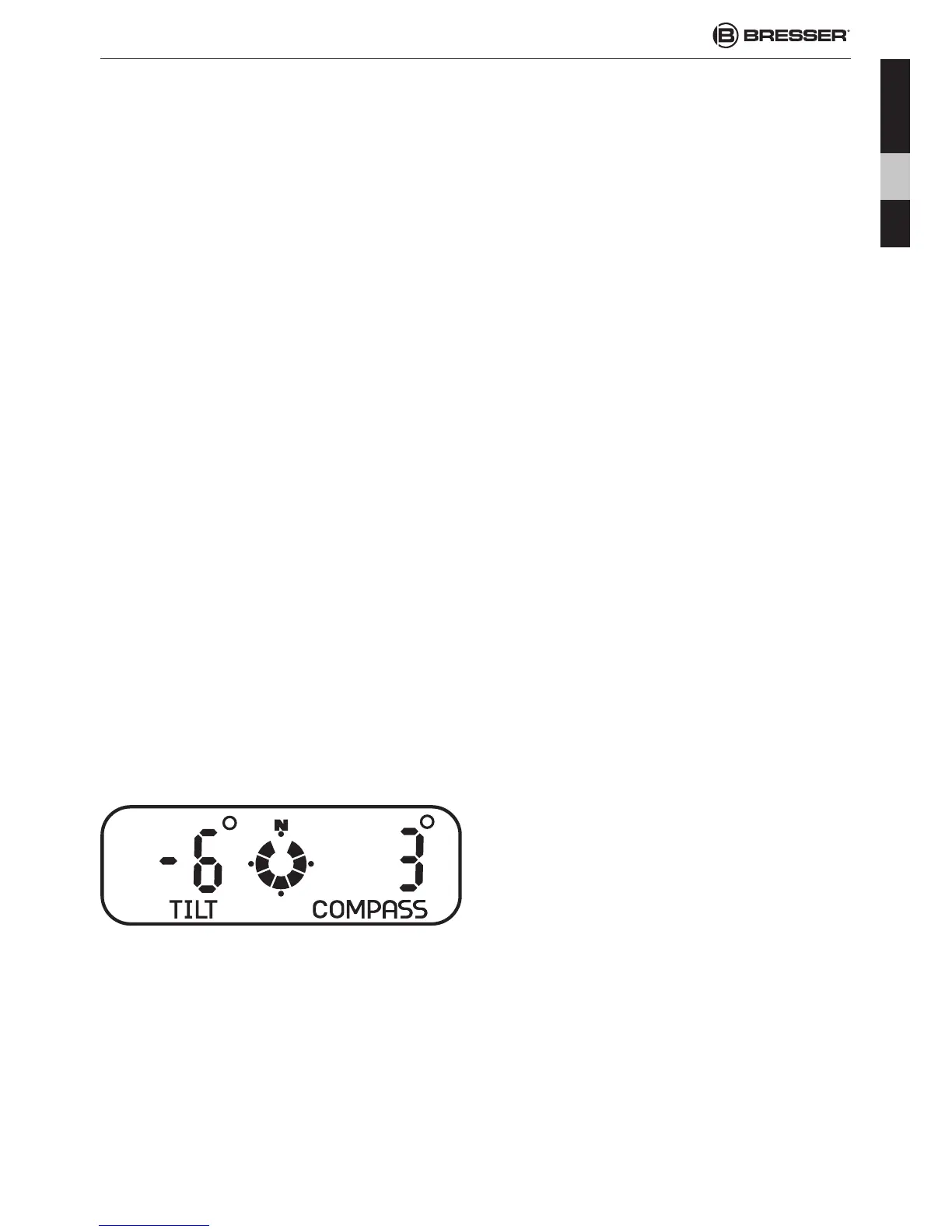 L’angle d’inclinaison est donné à gauche (TILT). Vous trouvez au centre une rose des