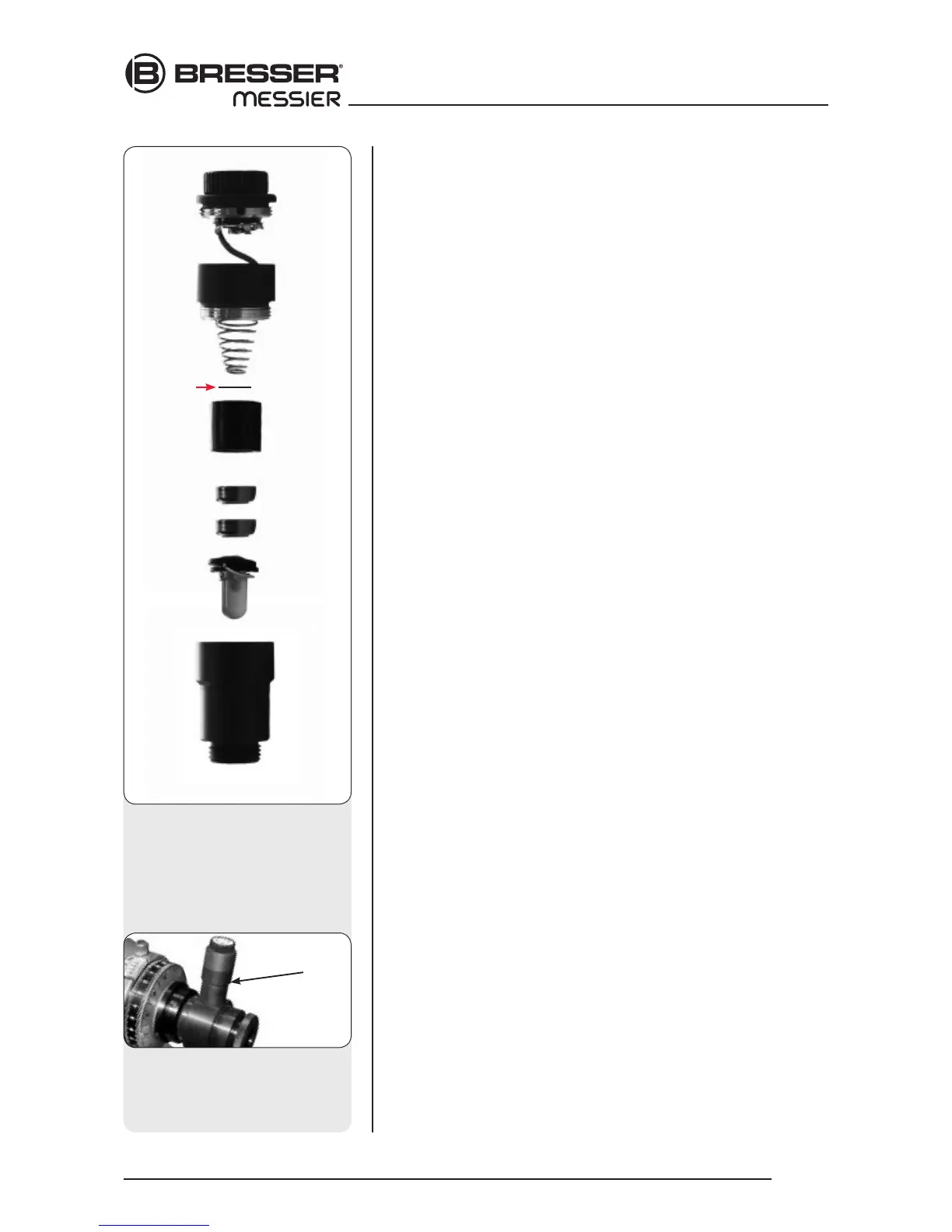 telescope‘s eyepiece. Focus the image by turning the focus knobs (8,