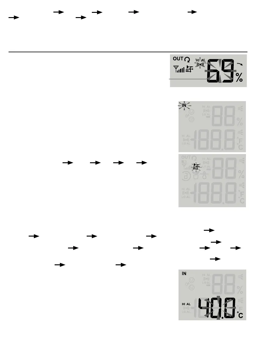 • Wenn das Symbol "Innen" angezeigt wird, istdie Auswahlsequenz : In Temperatur HI In Temperatur