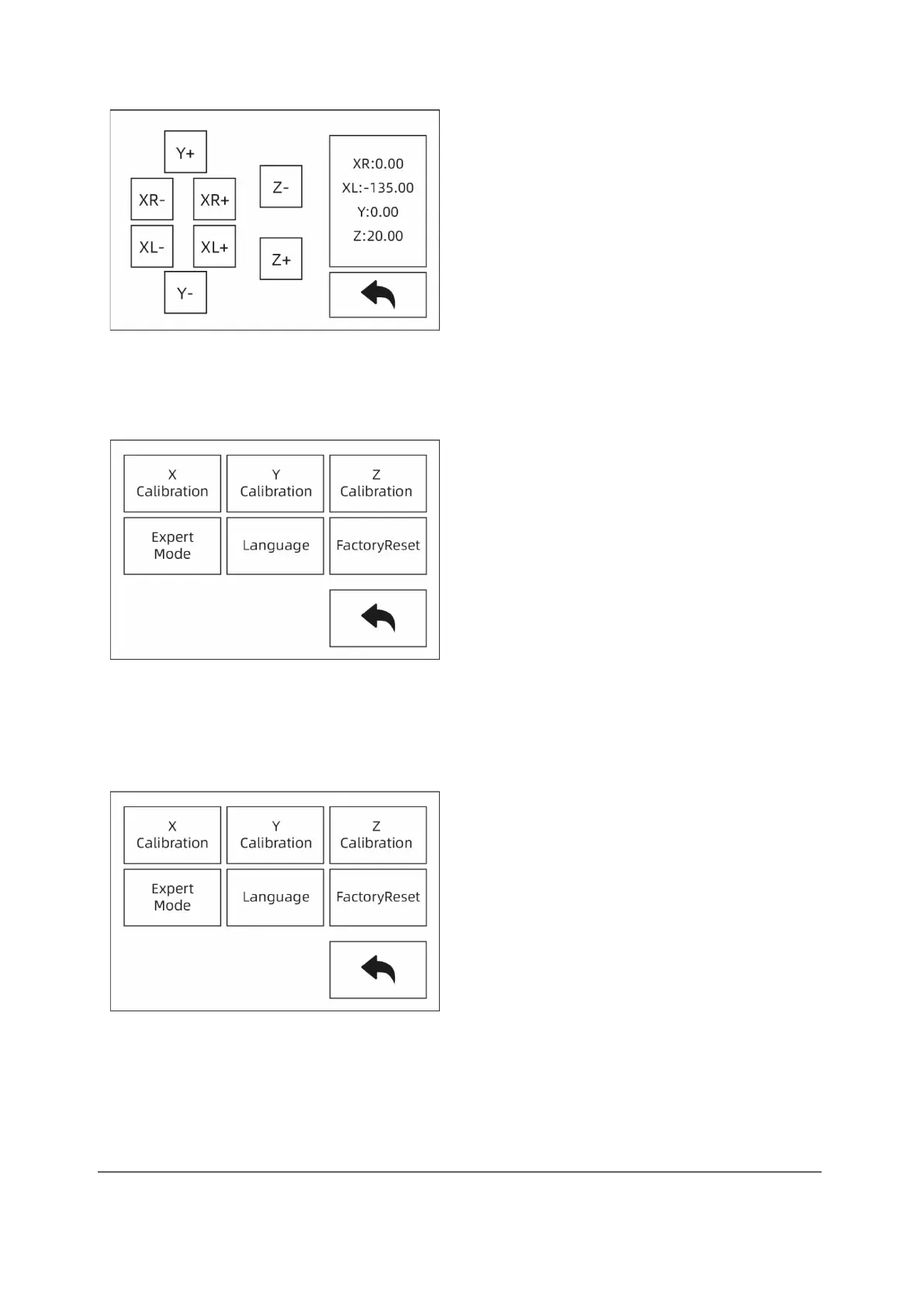 The "Setting" interface includes "X Calibration", "Y Calibration", "Z Calibration",