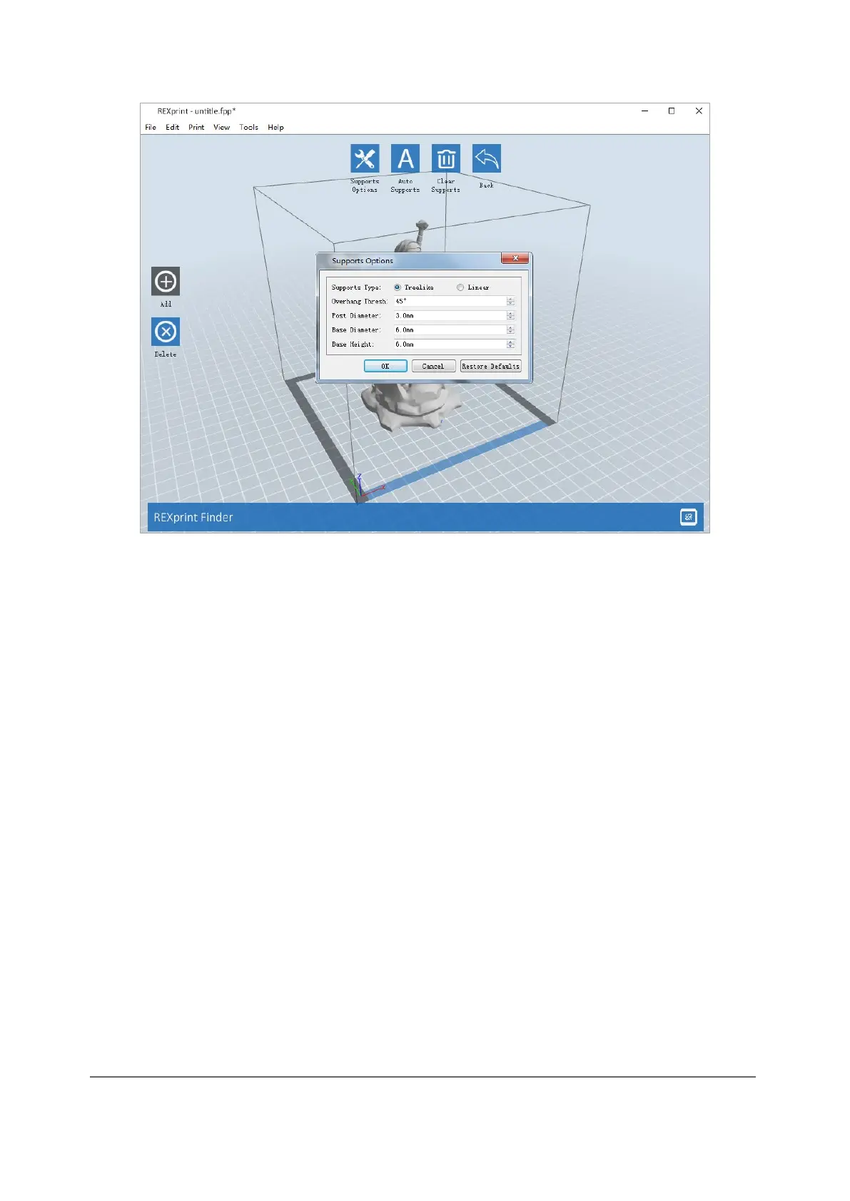 Supports are added when you click the [Add] button. Position the mouse pointer at