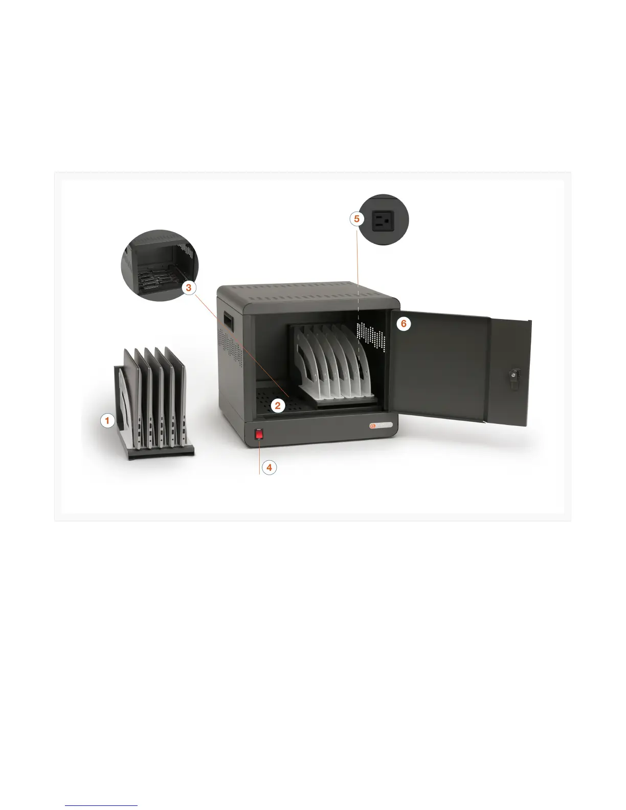 1. Device Modules - Two (2) removable 5-slot modules for storing devices.