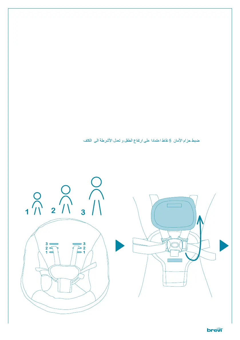they lean correctly on the shoulders. DE- Den 5 Punkte Gurt der Größe Ihres Kindes anpassen,