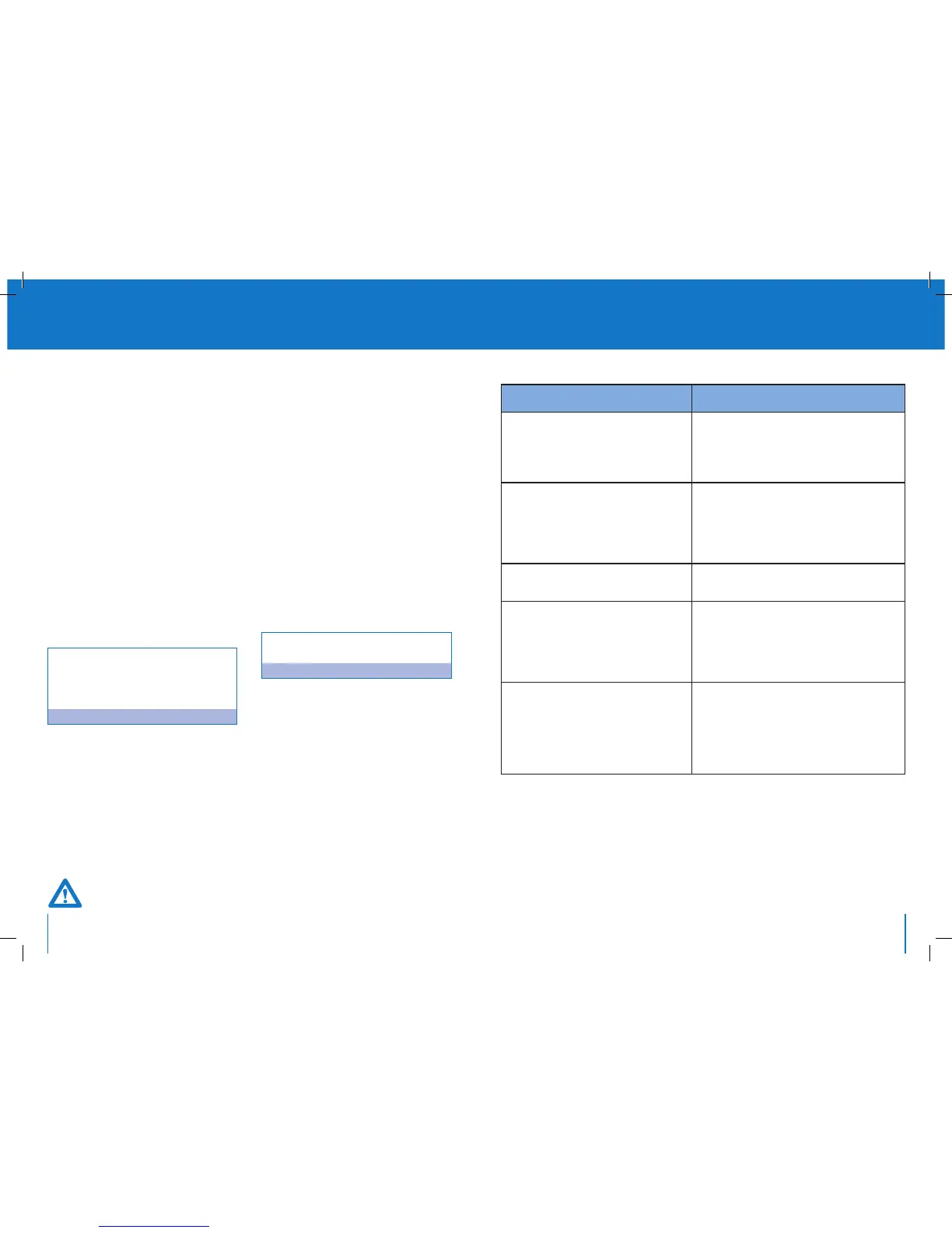 Troubleshooting table