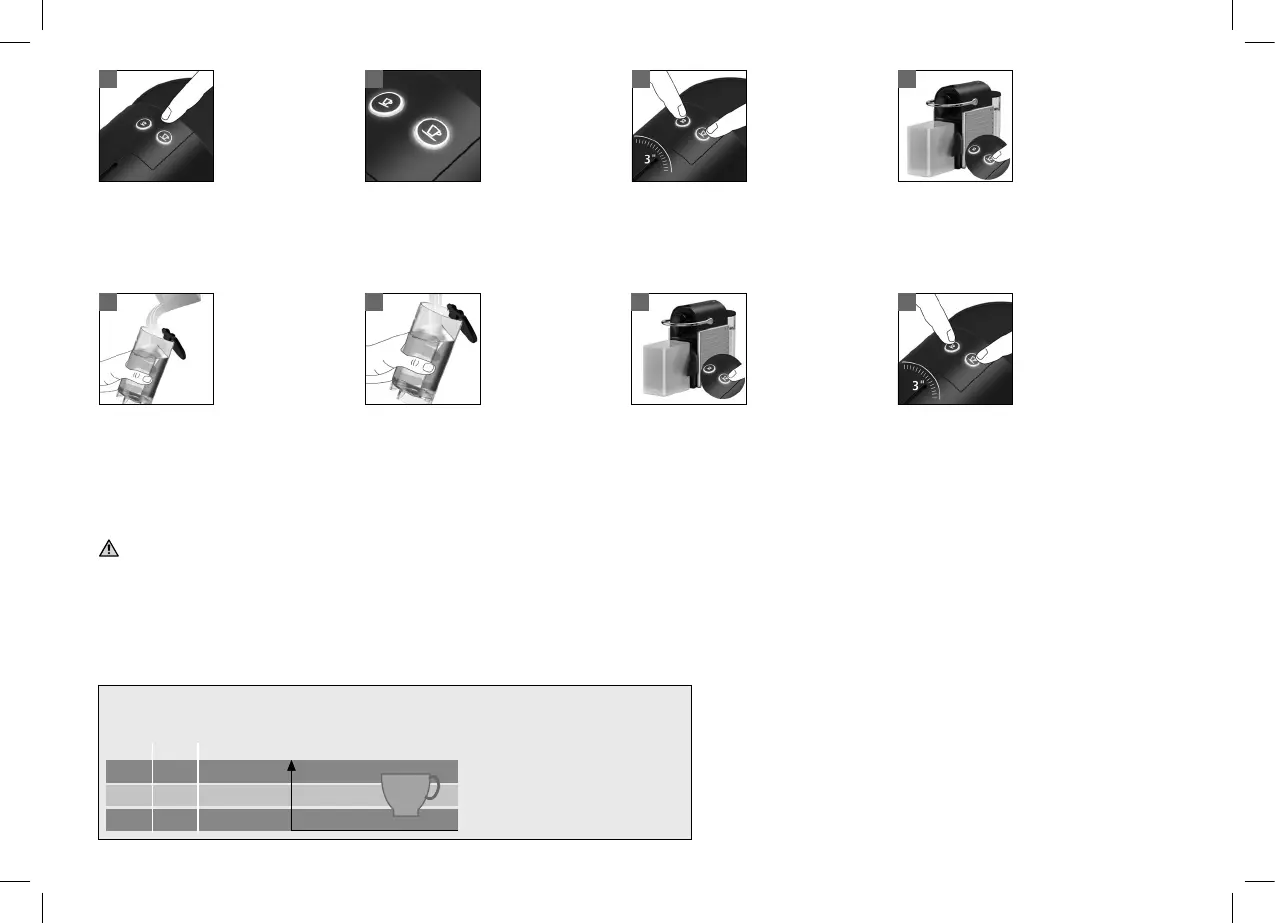 The descaling solution can be harmful. Avoid contact with eyes, skin and surfaces. The following table will indicate the descaling frequency required for