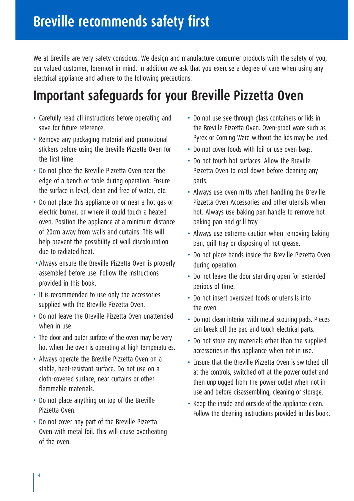 Important safeguards for your Breville Pizzetta Oven