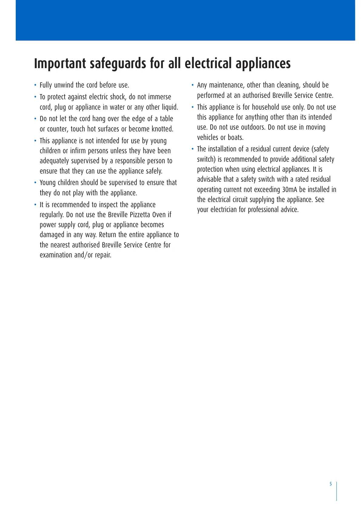 performed at an authorised Breville Service Centre.