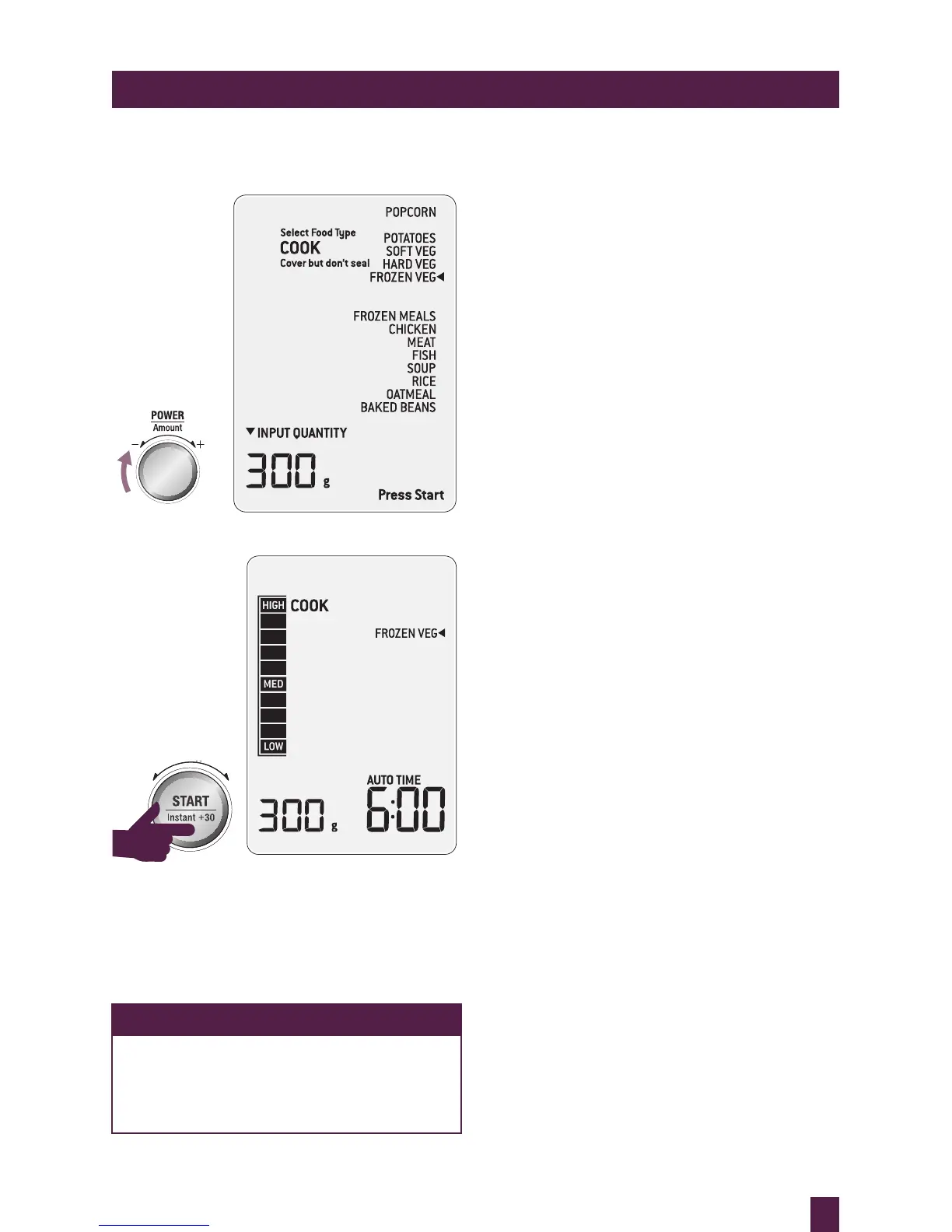 • Foods need be cooked in a microwave safe