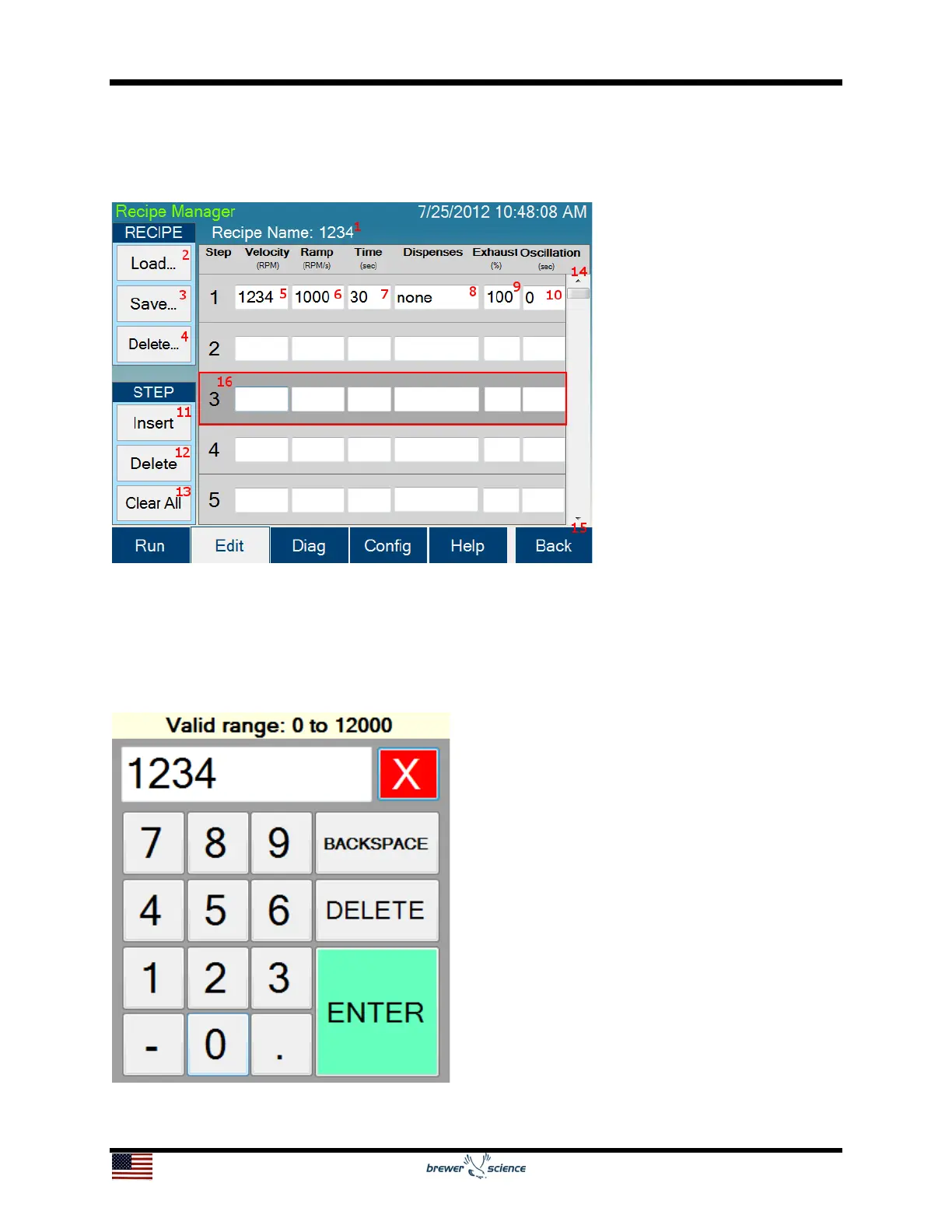Using the numeric pad, the user can now enter the parameter for the selected step. The