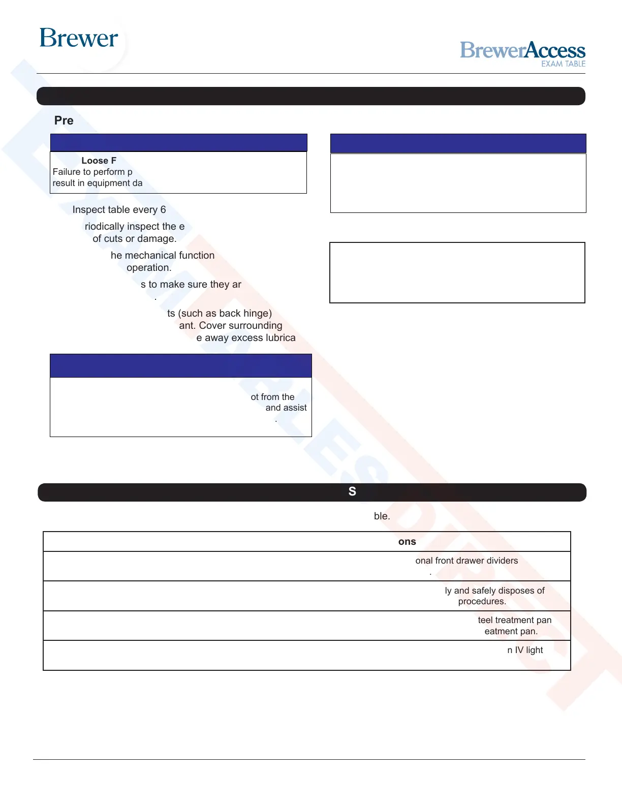 the patient from the table. Service the table prior to use.