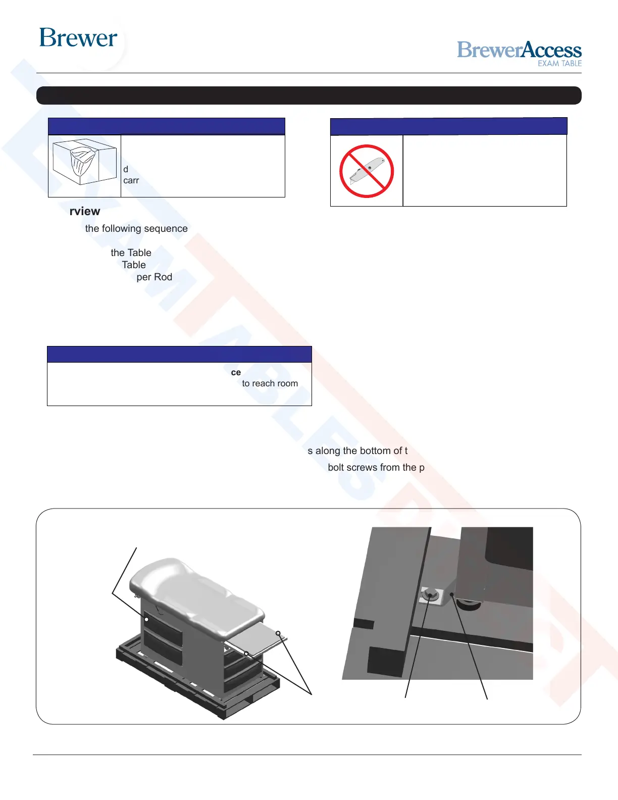 1. Carefully remove outer carton by removing the staples along the bottom of the carton and lift off table.