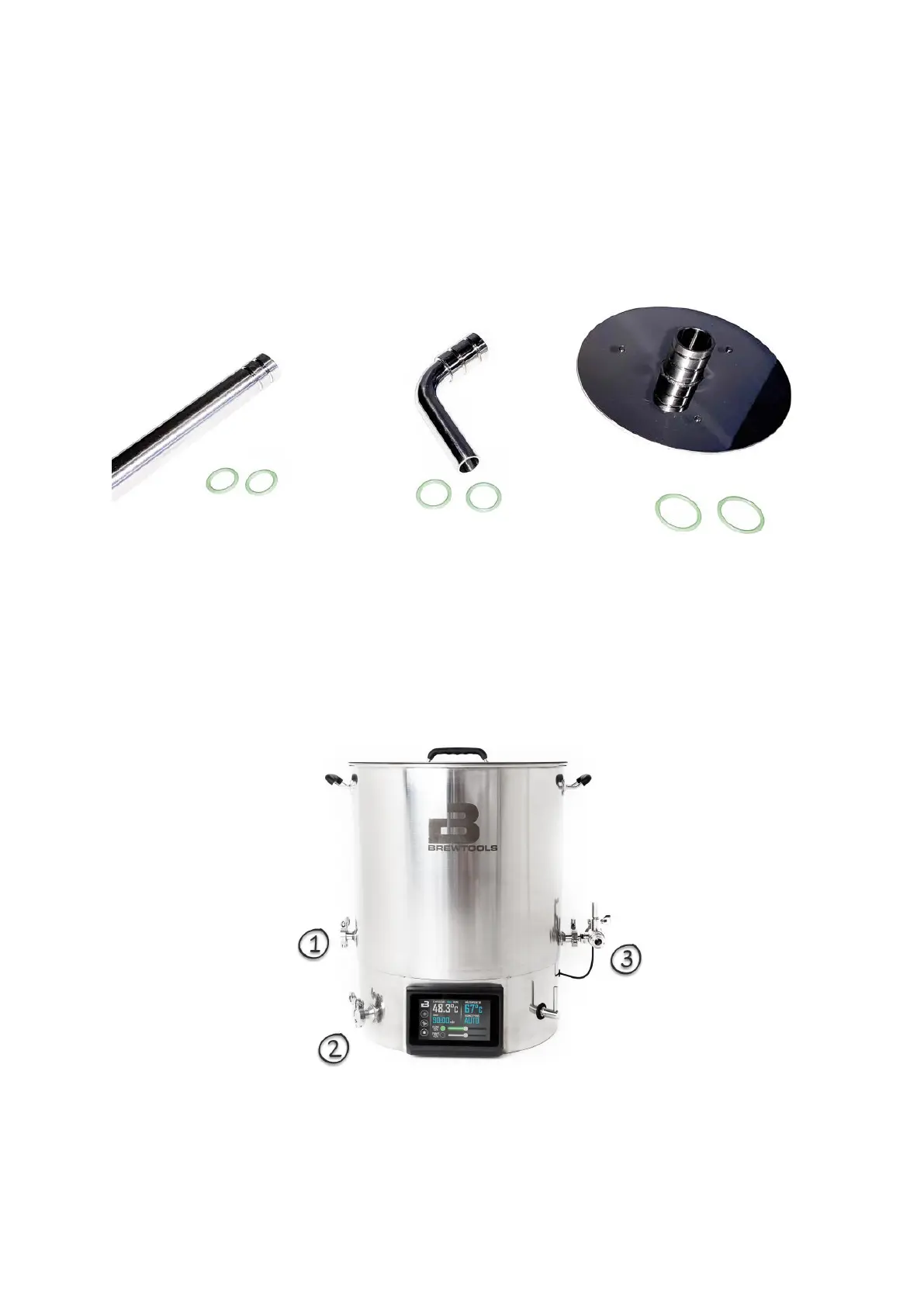 Center pipe (16x2mm), dip tube (18x2mm) and mash hat (22x2mm)