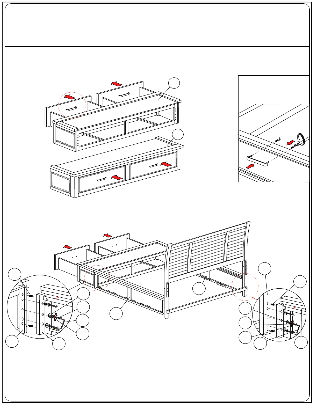 BRICK SV300KH - Footboard and Drawer Assembly; Assembling the Footboard Drawer Box; Connecting Main Frame Components; Attaching Side Rails to Headboard and Footboard