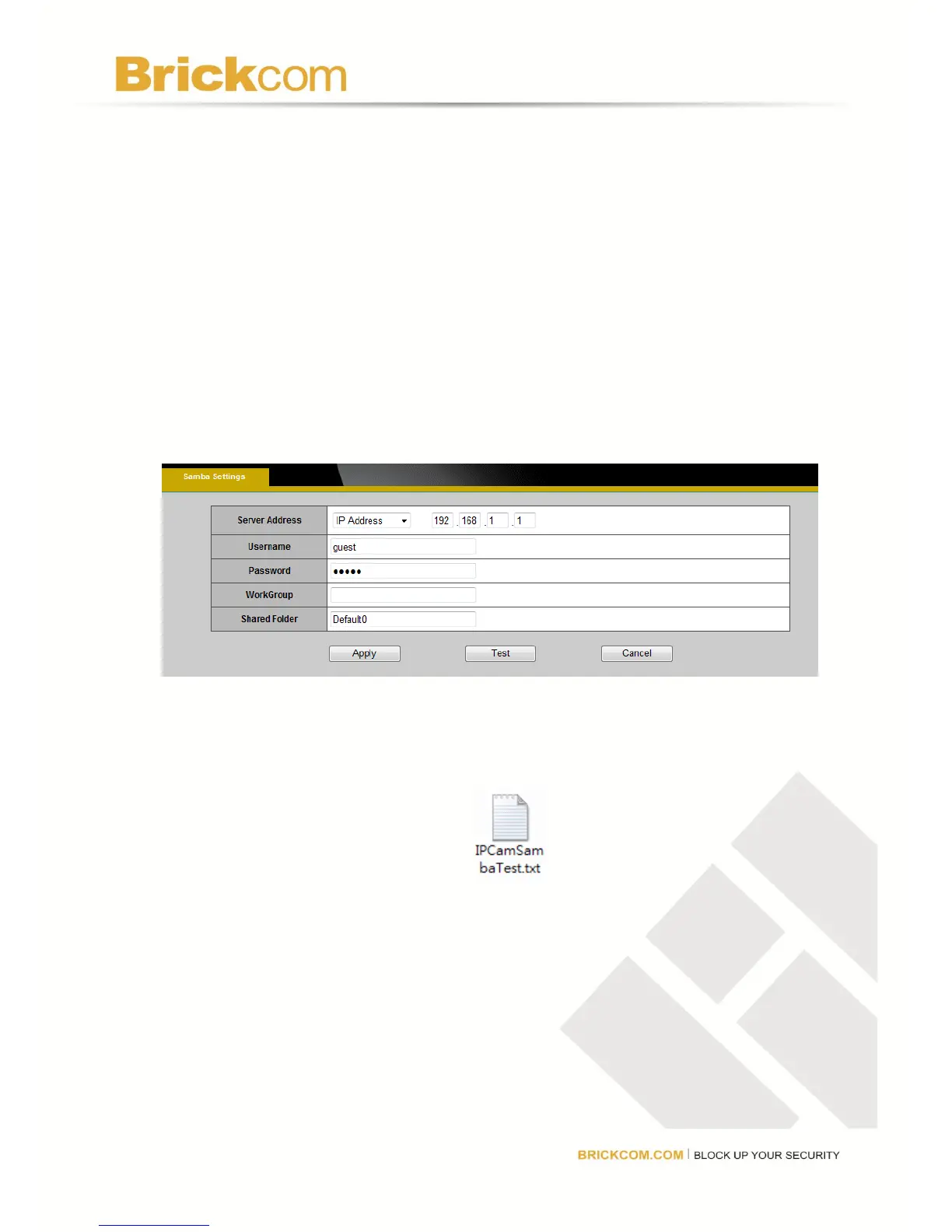 5. Click on Test to verify that the samba settings are correct. If the settings are correct., a txt