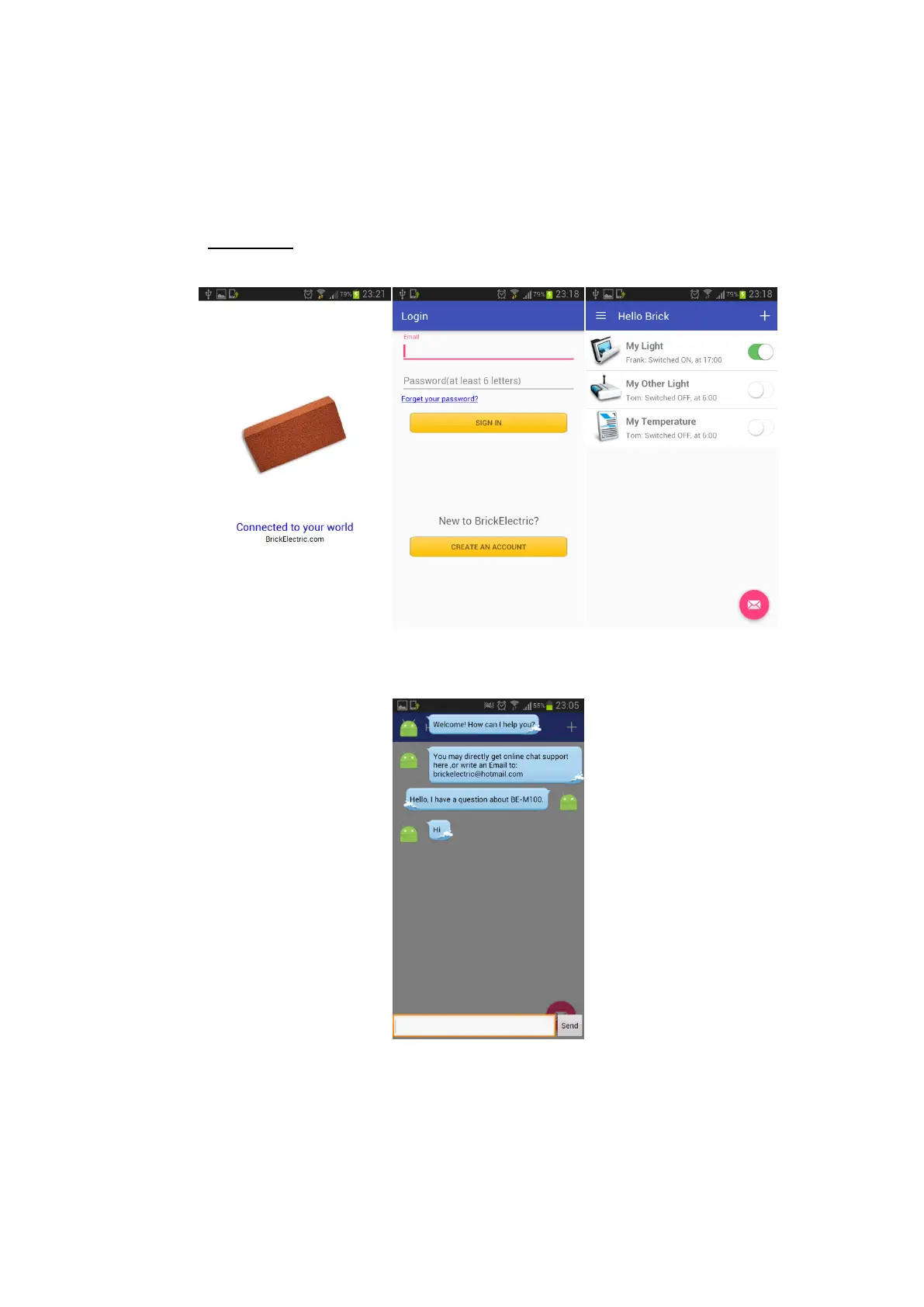 2. Open "Hello Brick" app for android at any android phone, register a user and then have fun