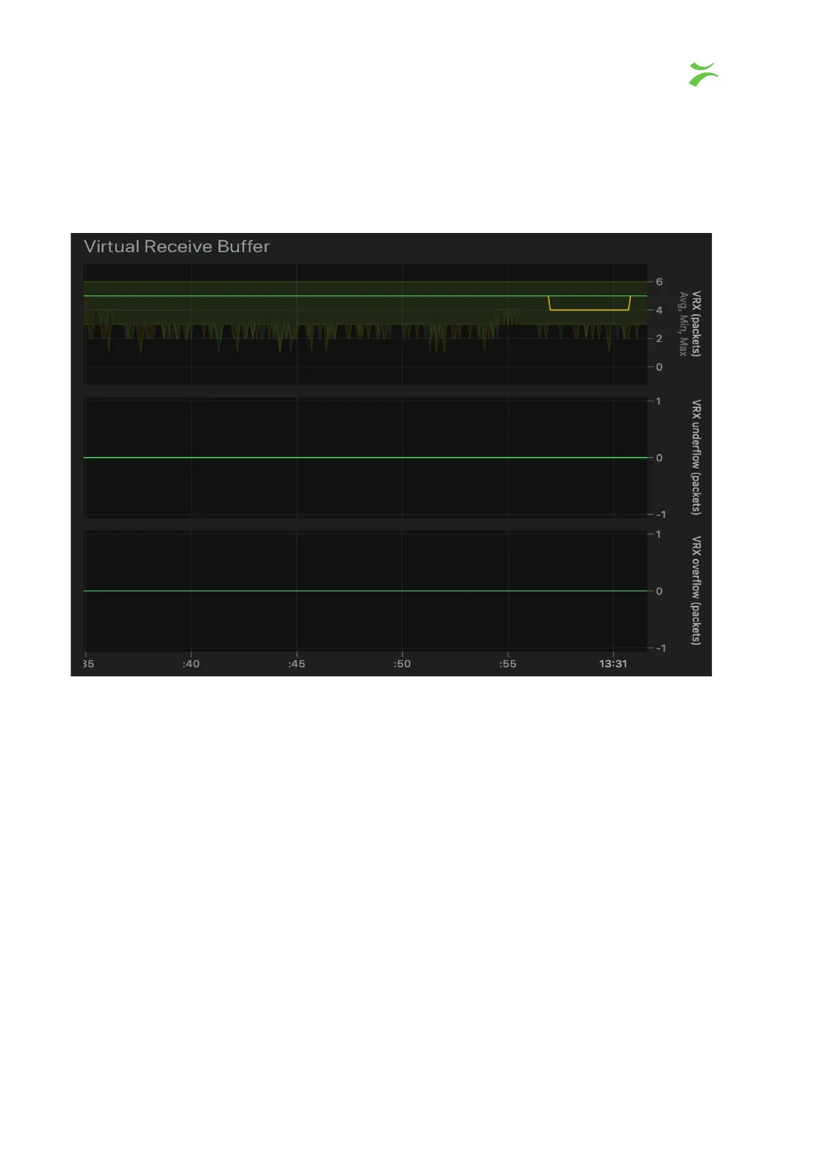 This section contains three graphs. The VRX graph measures the number of packets