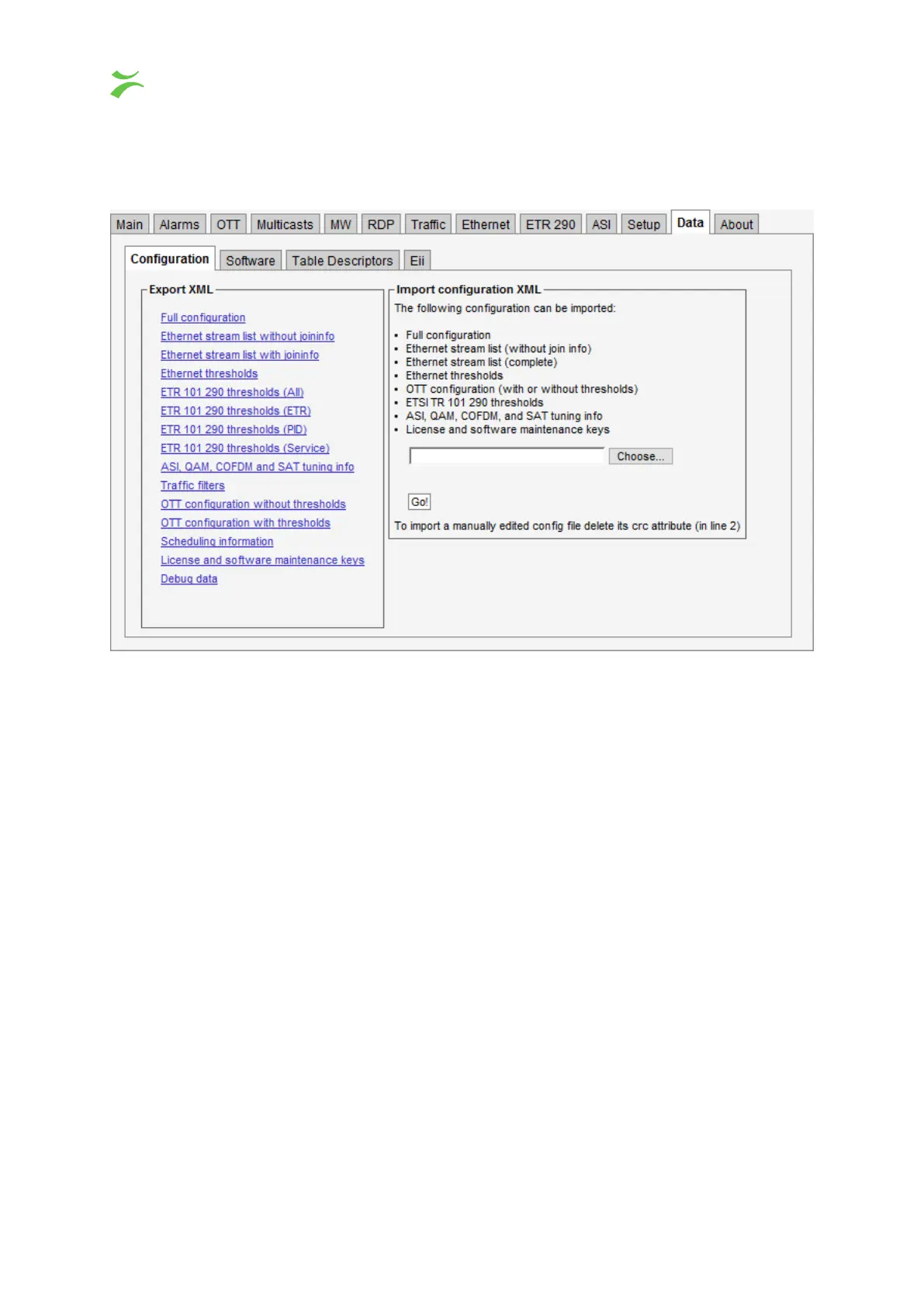 Configuration files generated by a probe can be imported by the VB440. Multicast stream lists, OTT