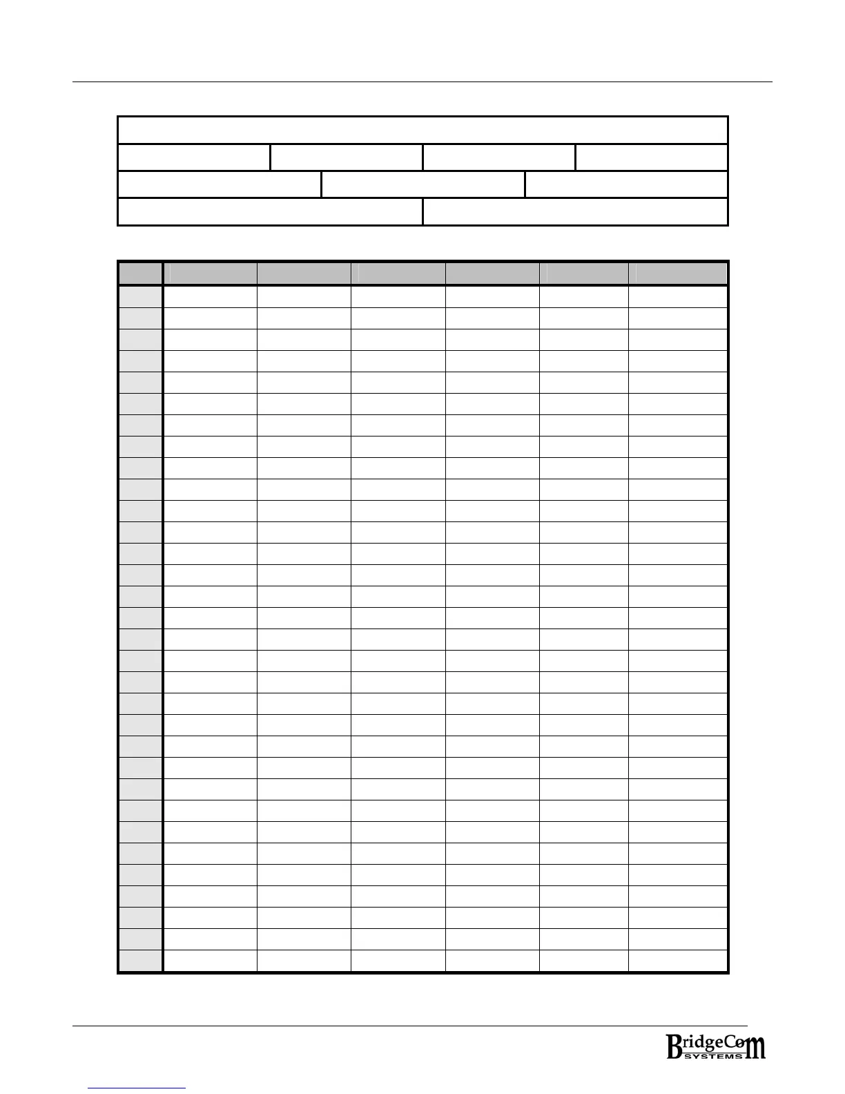 BridgeComSystems ComLink CS-540 - Appendix D: Repeater System Record Sheet