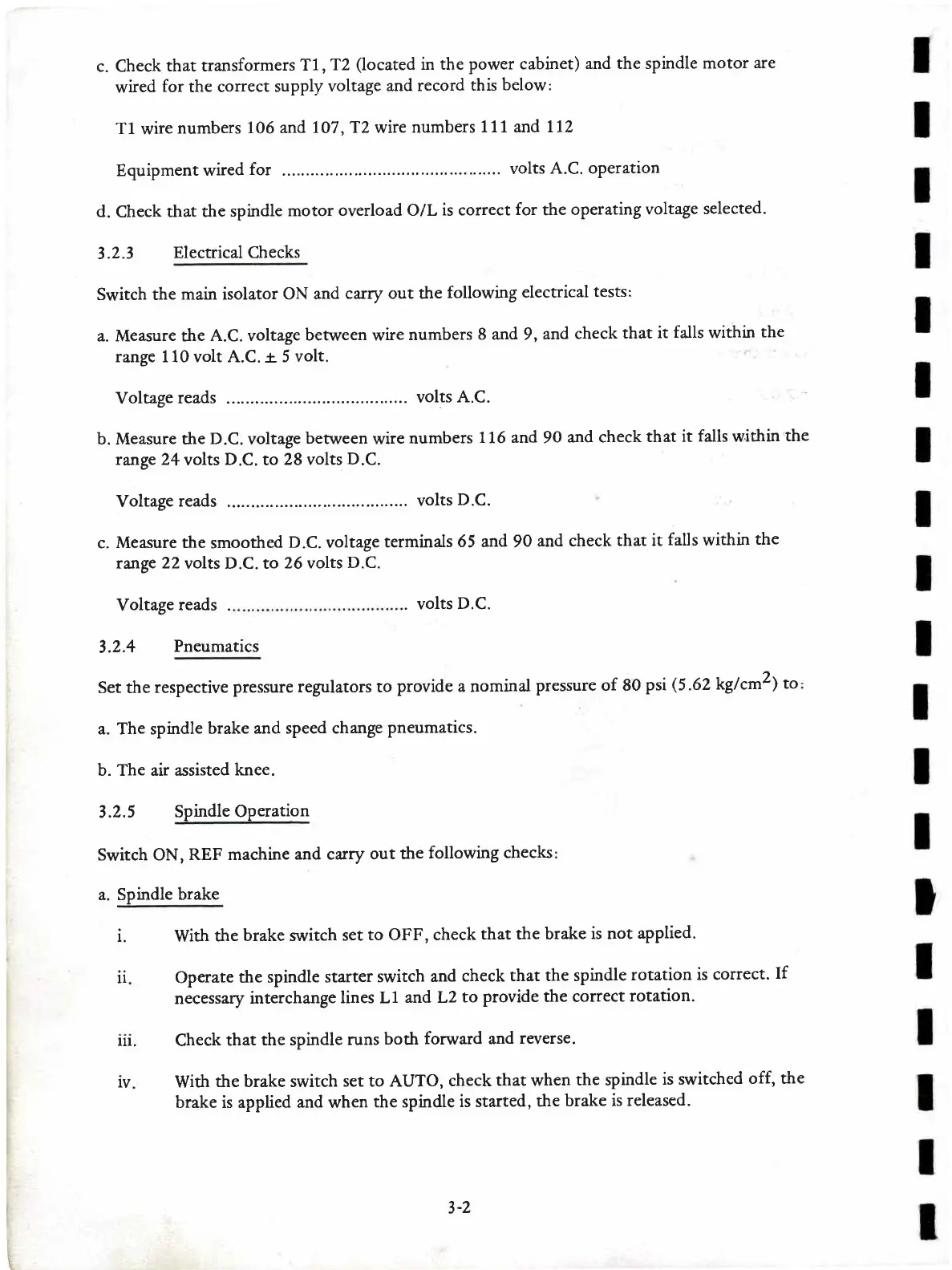 Bridgeport Interact 2 - Electrical Checks; Pneumatics; Spindle Operation; Spindle Brake