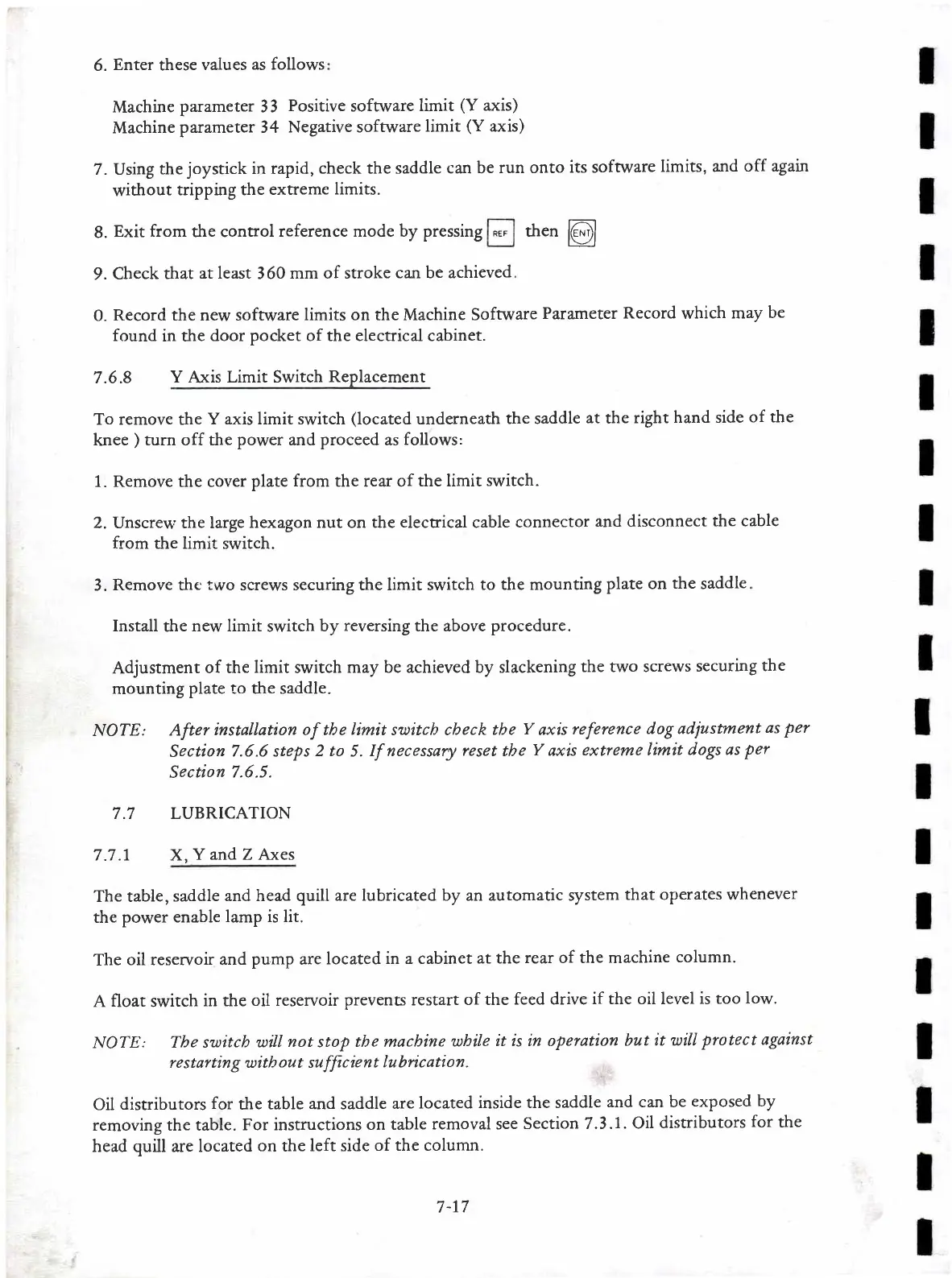 Bridgeport Interact 2 - X,Y and Z Axes; Y Axis Limit Switch Replacement; Lubrication