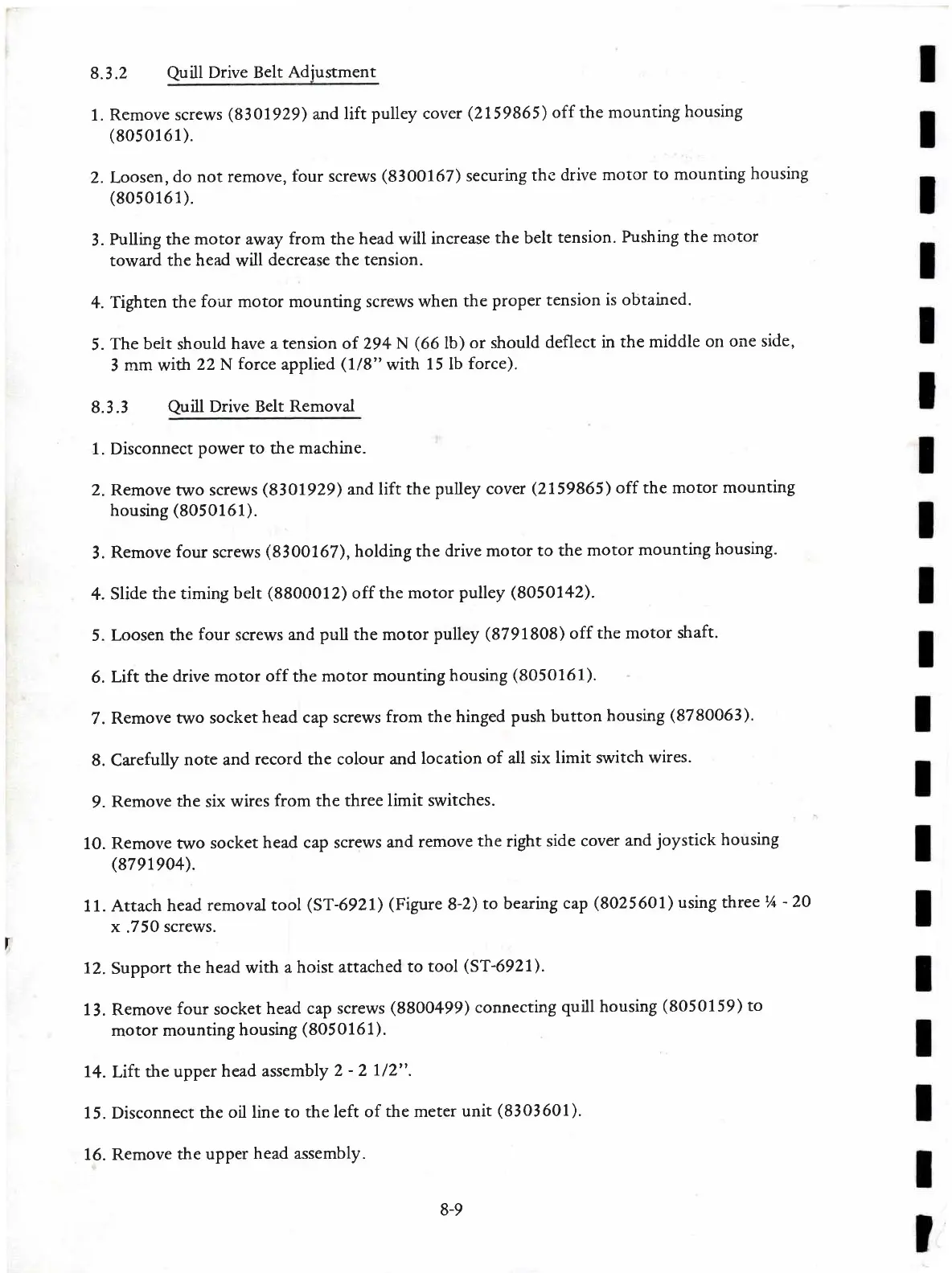 Bridgeport Interact 2 - Quill Drive Belt Adjustment; Quill Drive Belt Removal