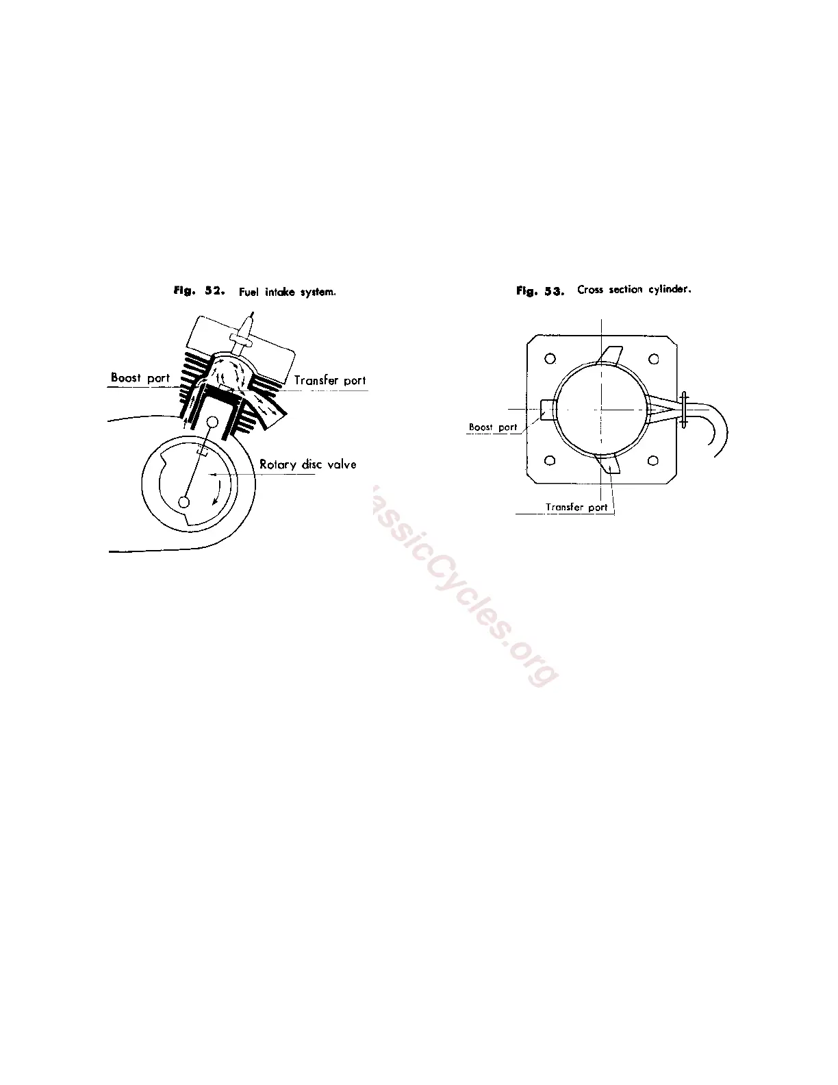 Because the carburetor is encased in the transmission case in the rotary disc valve engine, no intake port is