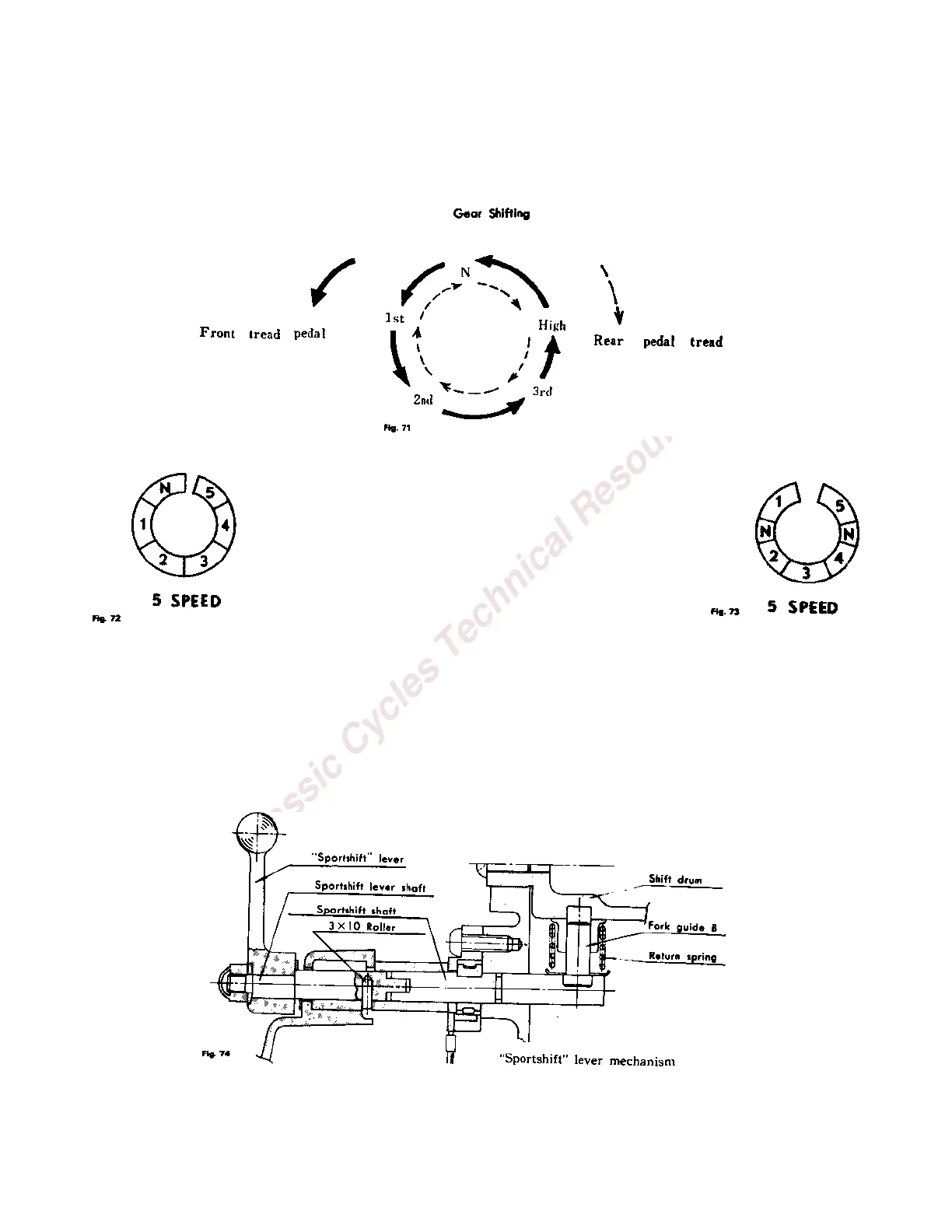 were equipped with the old style shift drum on which there were two neutral positions. As illustrated above