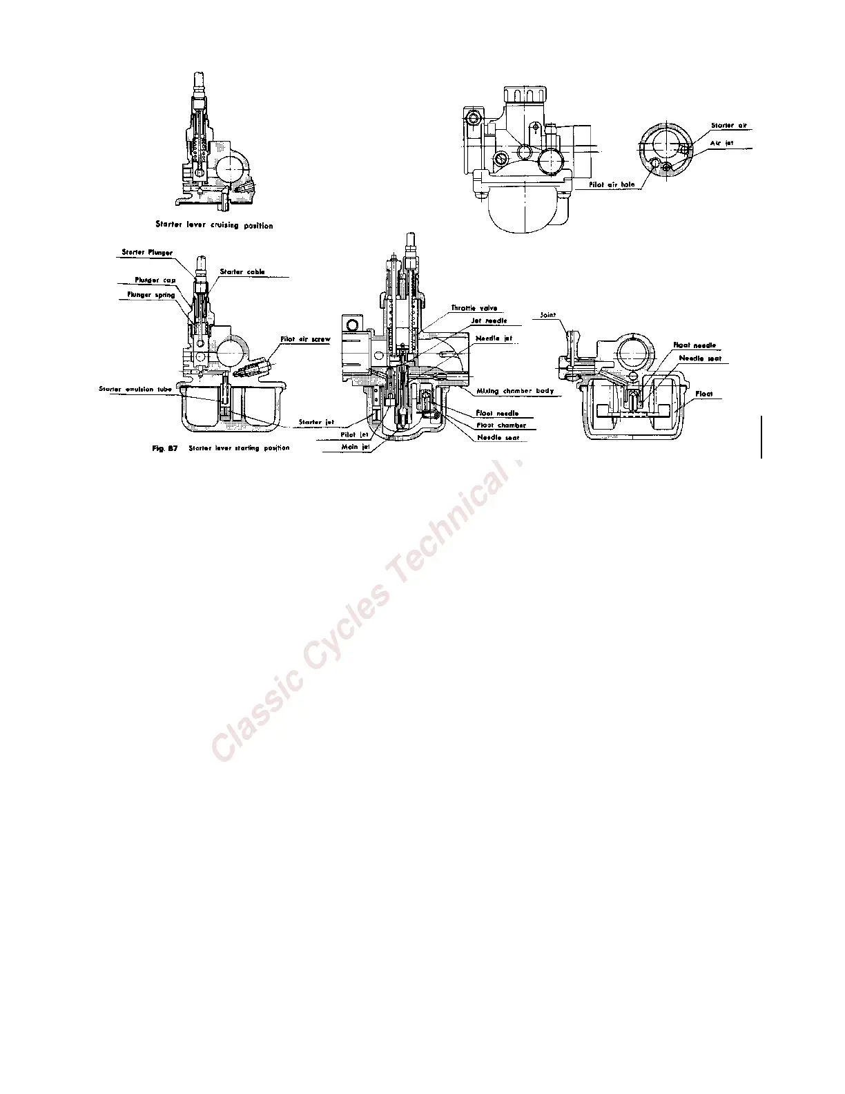 starter air channel. Strong air induction is generated at the fuel jet located at the narrow starter plunger.
