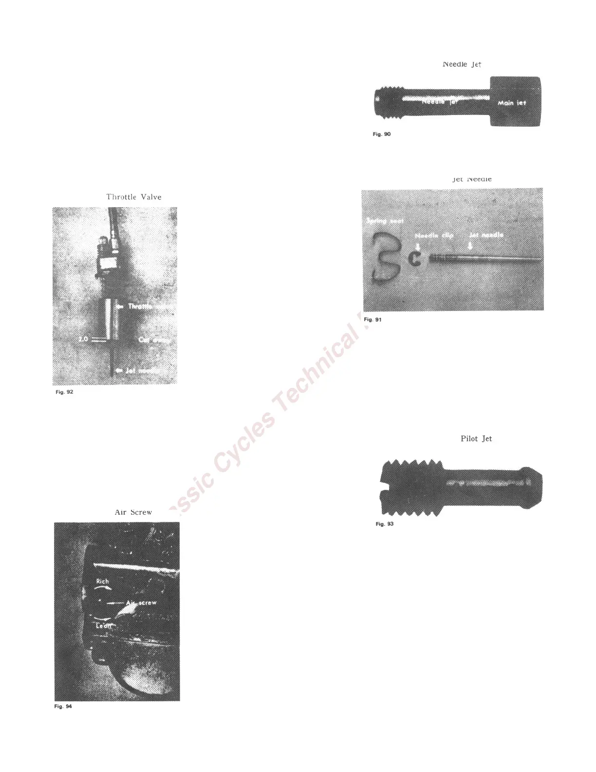 The tapered jet needle attached to the throttle valve works in the needle jet and adjusts the air/fuel ratio at