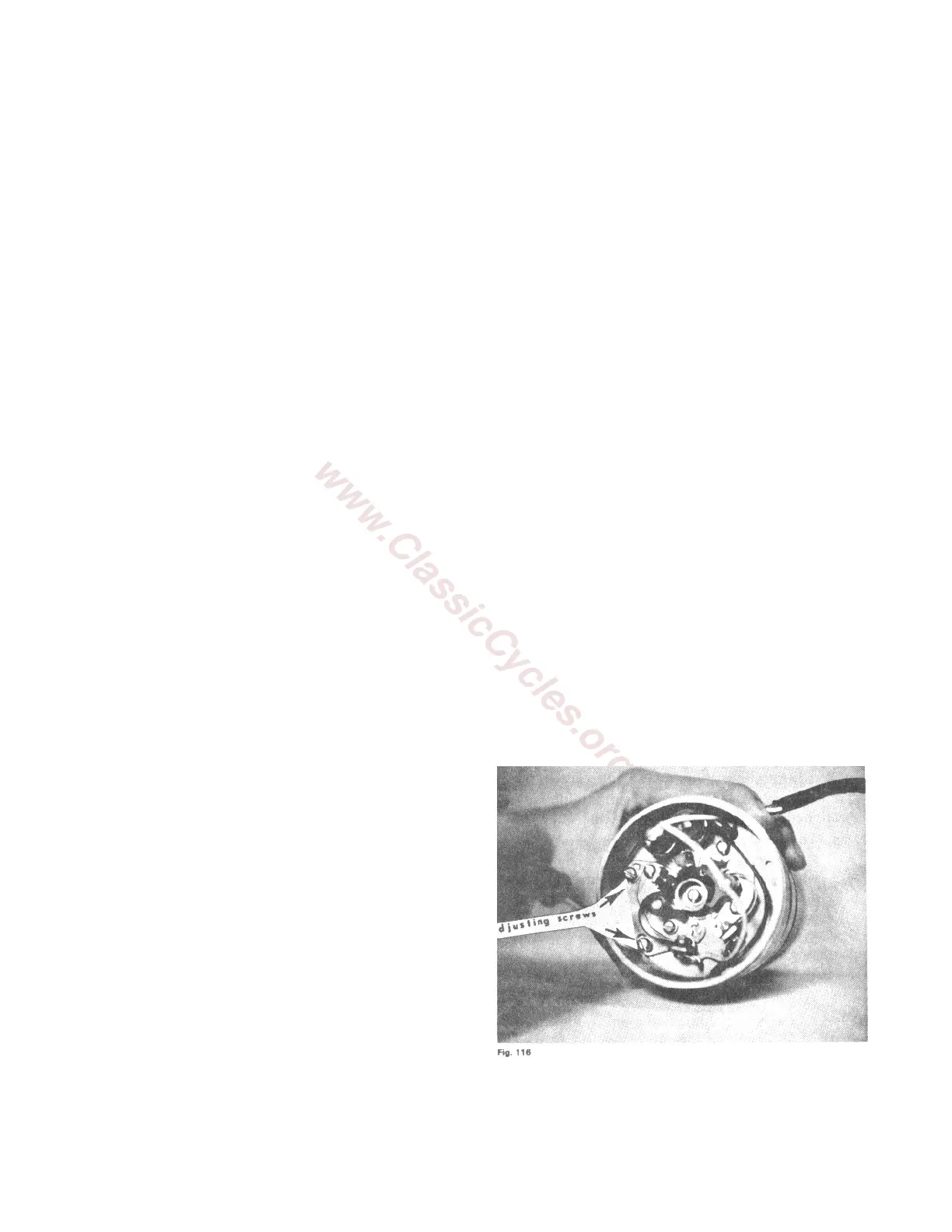 2. Loosen the 2 point timing plate screws ("A", fig. 116)